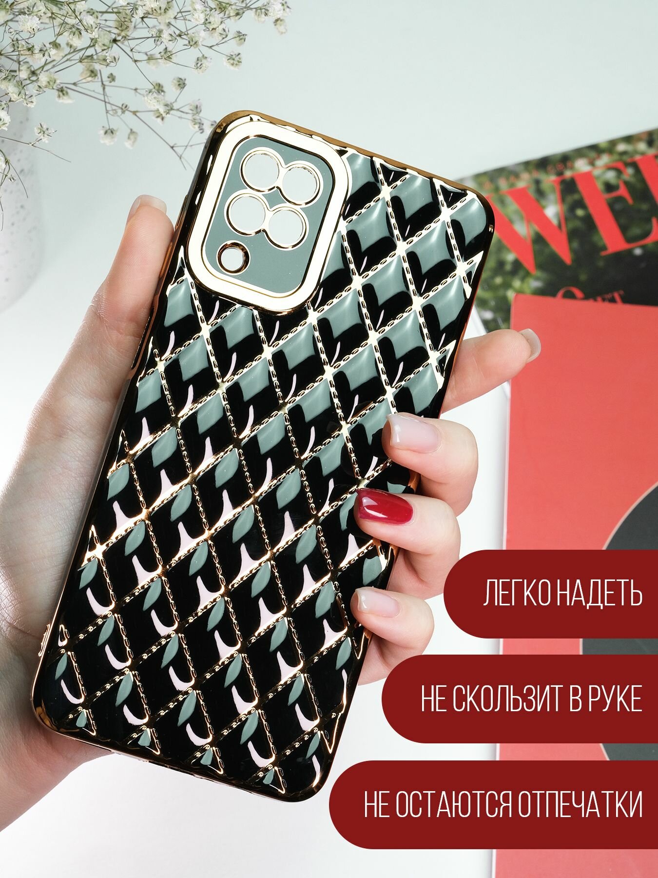 Чехол на Samsung Galaxy A12 / M12 силиконовый защитный бампер на Самсунг Галакси A12 / М12 с золотой рамкой Зеленый 369 ₽