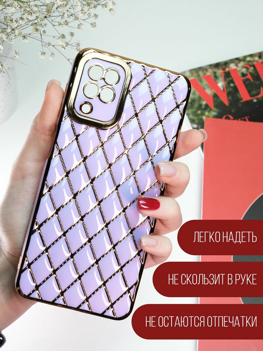 Чехол на Samsung Galaxy A12 / M12 силиконовый защитный бампер на Самсунг Галакси A12 / М12 с золотой рамкой Сиреневый информация: