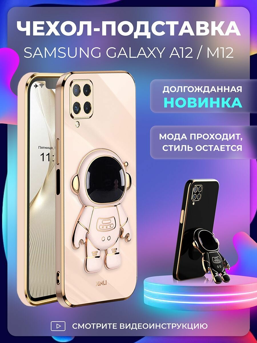 Чехол на Samsung Galaxy A12 / M12 защитный бампер с подставкой-попсокетом Космонавт на Самсунг Галакси А12 / М12 Розовый информация:
