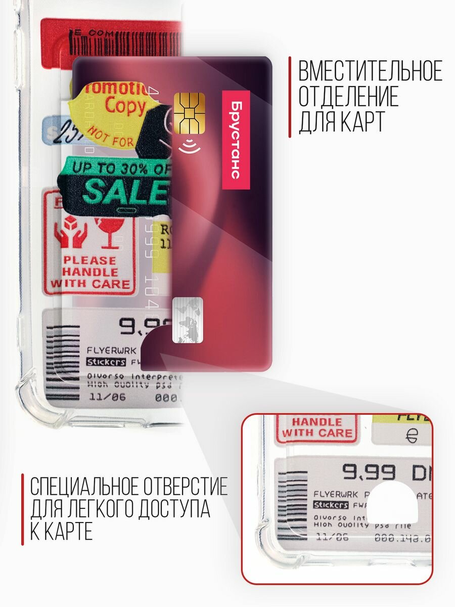 Чехол на Samsung Galaxy A12 / M12 противоударный прозрачный бампер с карманом для карт на Самсунг А12 / М12 информация: