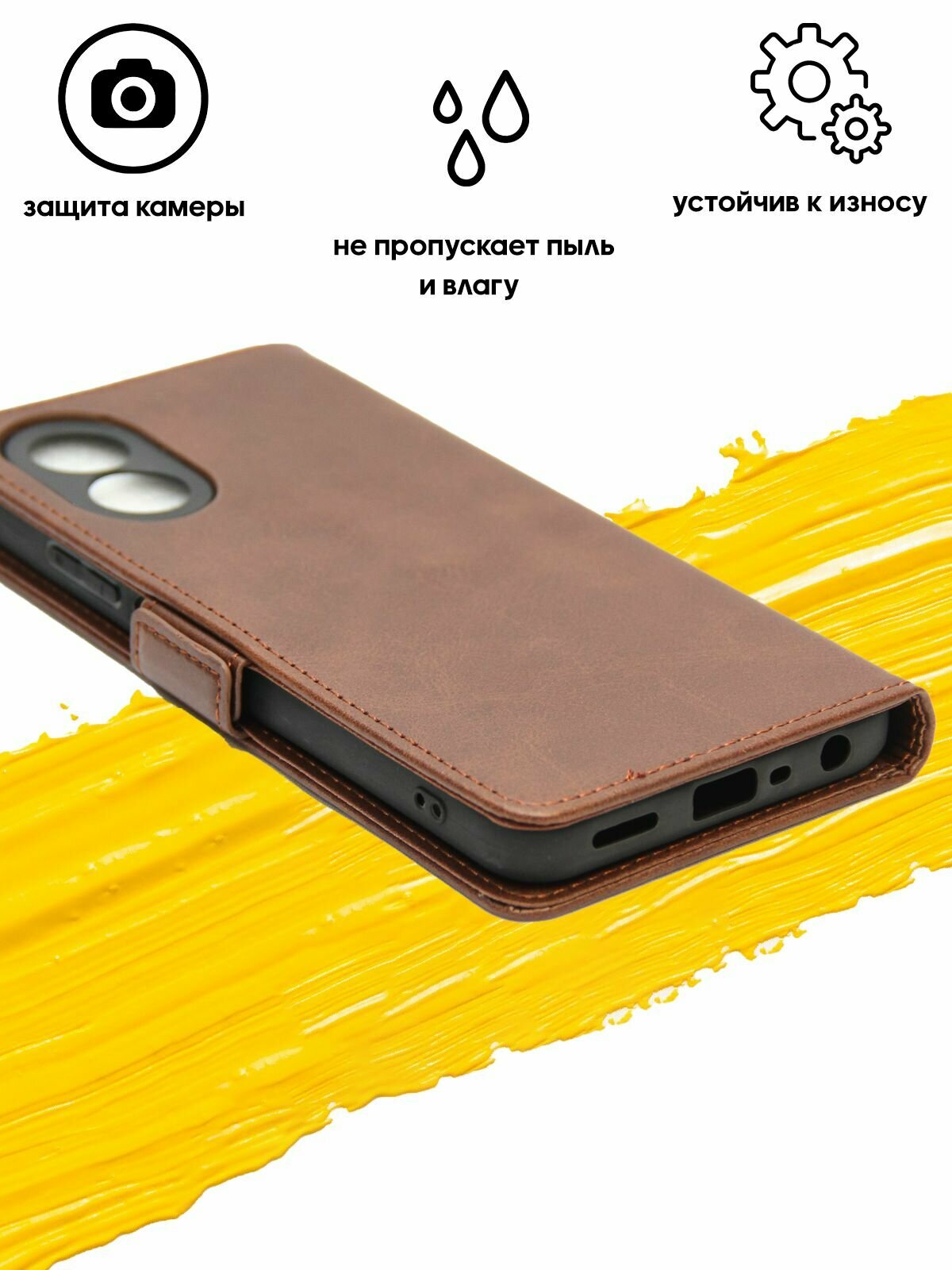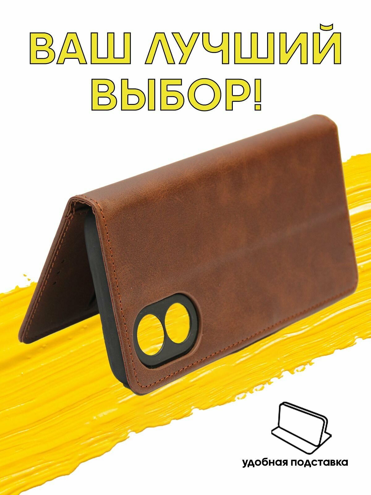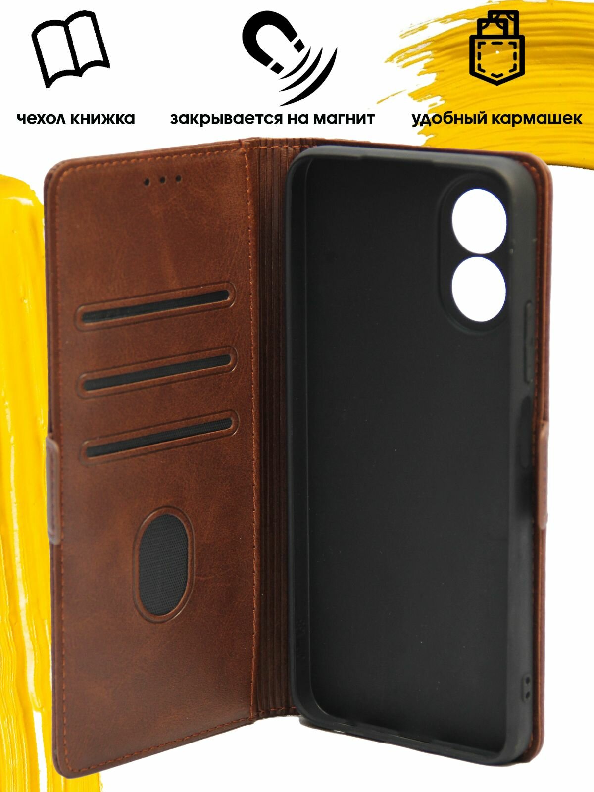 Отзывы на Чехол книжка для Oppo A18 & Oppo A38 / чехол на оппо а18 и оппо а38 с боковым магнитом коричневый