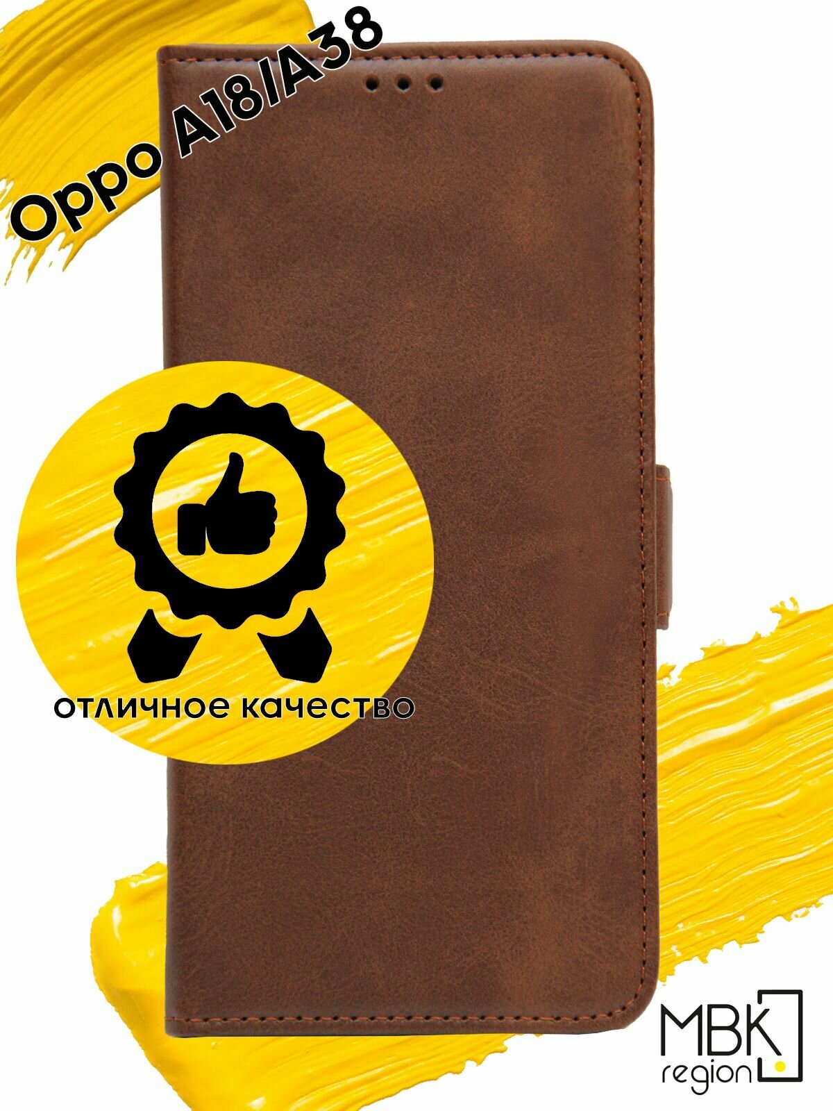 Чехол книжка для Oppo A18 & Oppo A38 / чехол на оппо а18 и оппо а38 с боковым магнитом коричневый информация:
