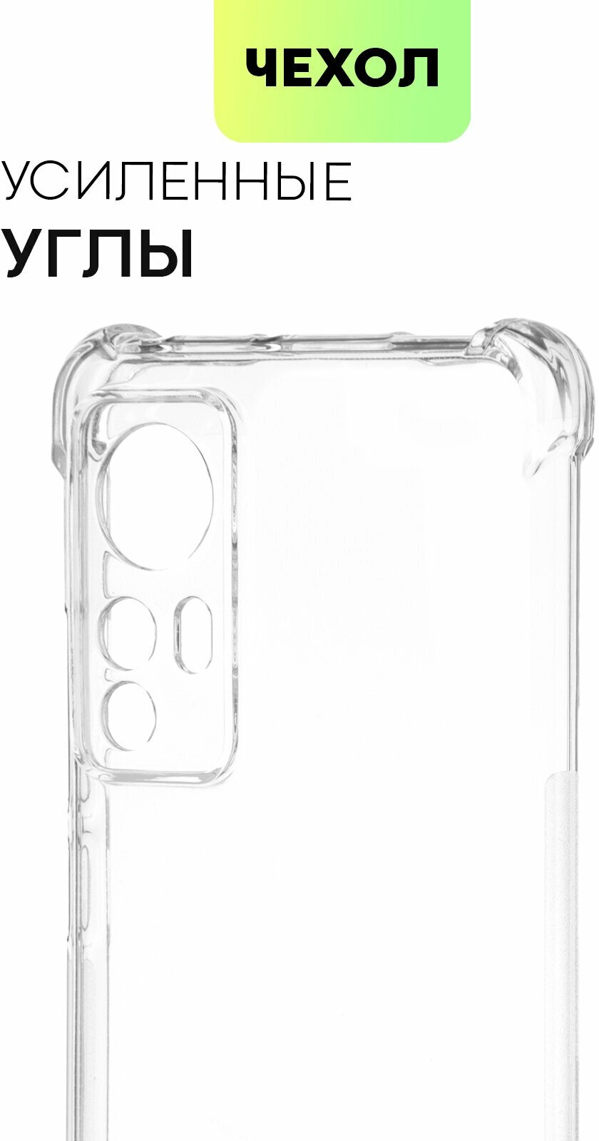 10 цен на Противоударный чехол BROSCORP на Xiaomi 12 и Xiaomi 12X (Сяоми 12 и 12Х), с усиленнными углами, прозрачный