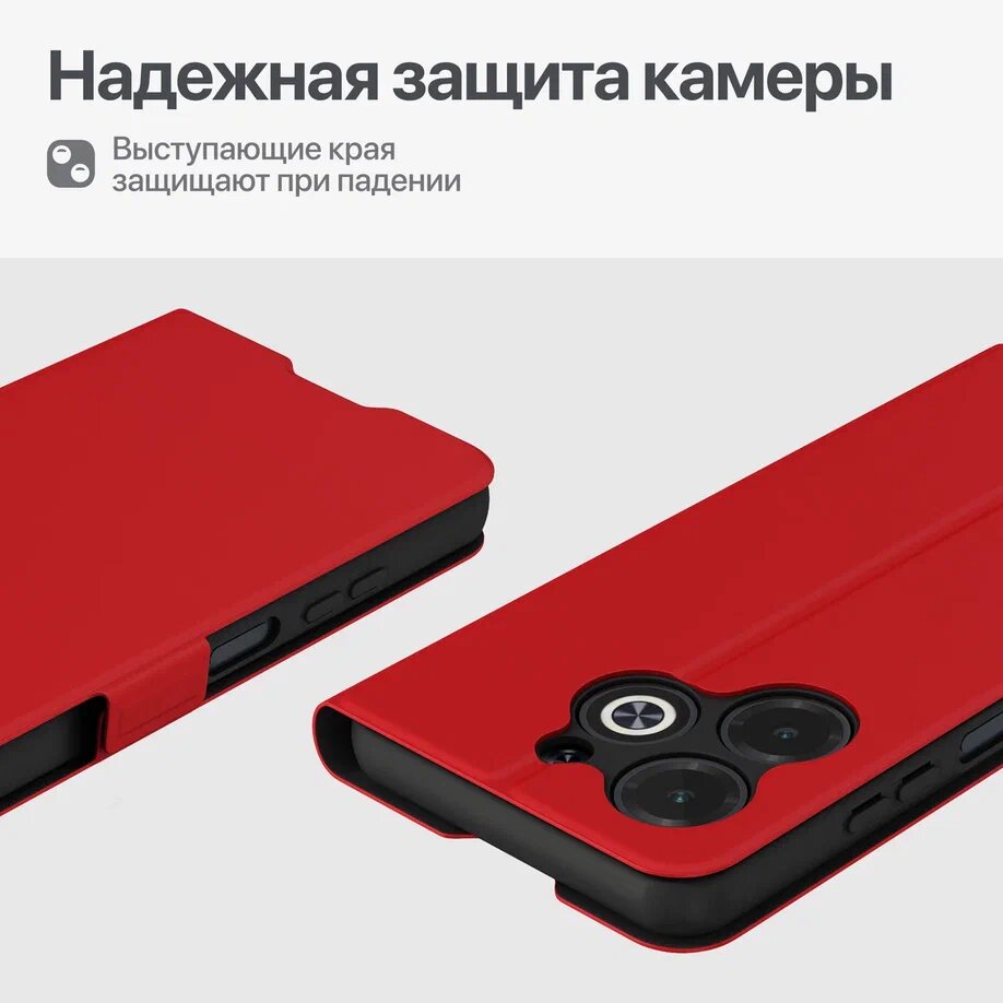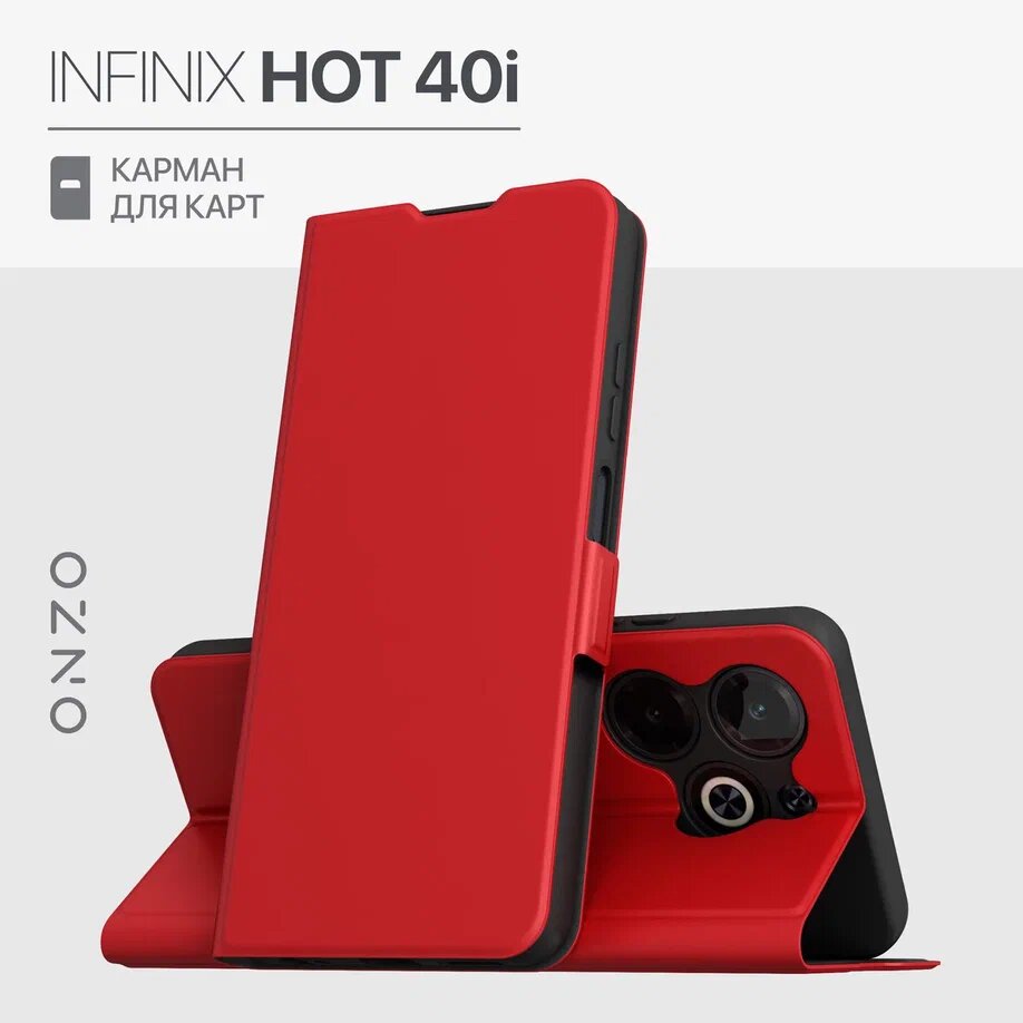 10 цен на Чехол книжка для Infinix HOT 40i / Инфиникс Хот 40i из искусственной кожи, с карманом, красный
