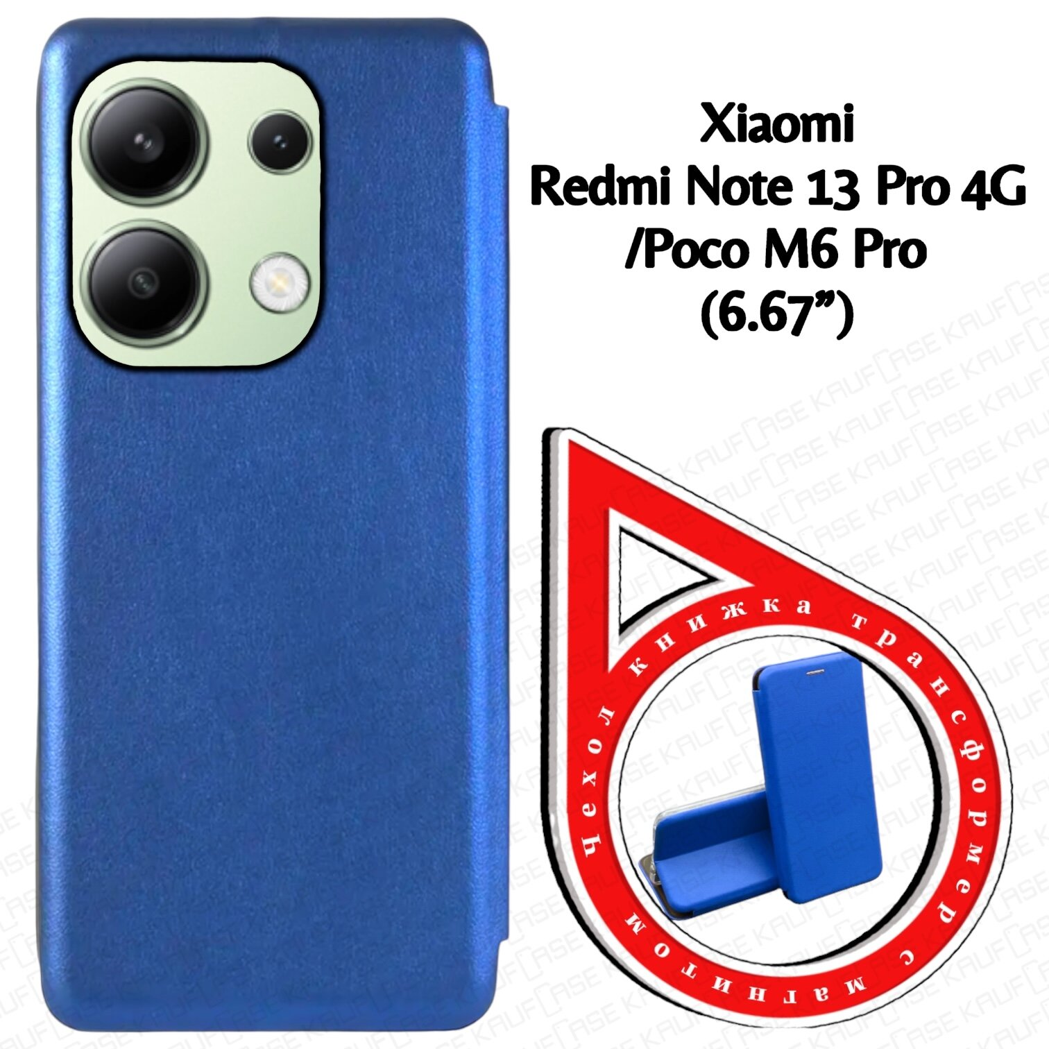 Отзывы на Чехол книжка для телефона Xiaomi Redmi Note 13 Pro 4G/ Poco M6 Pro (6.67"), синий. Текстура под кожу