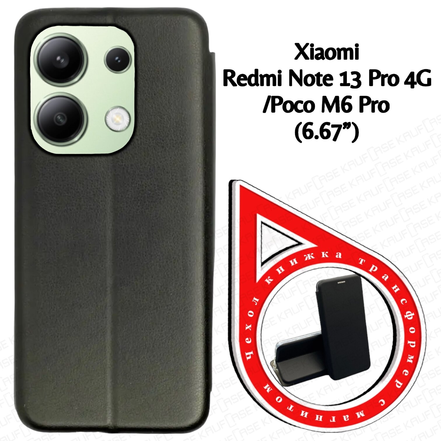 Чехол книжка для телефона Xiaomi Redmi Note 13 Pro 4G/ Poco M6 Pro (6.67"), черный. Текстура под кожу информация: