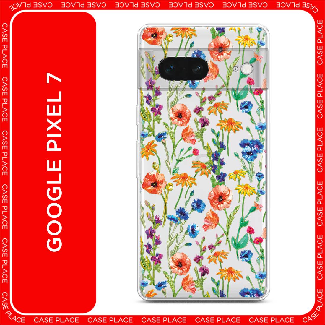 10 цен на Чехол на Google Pixel 7 / Гугл Пиксель 7 с принтом Маки и васильки фон, прозрачный