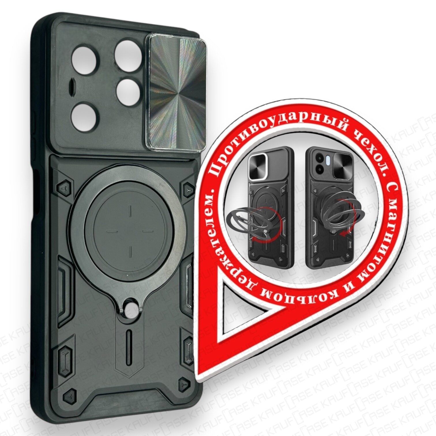 10 цен на Противоударный чехол на Tecno Spark 20 Pro (6.78"), черный. Кольцо-держатель и магнитное крепление, яркие пластиковые защитные вставки