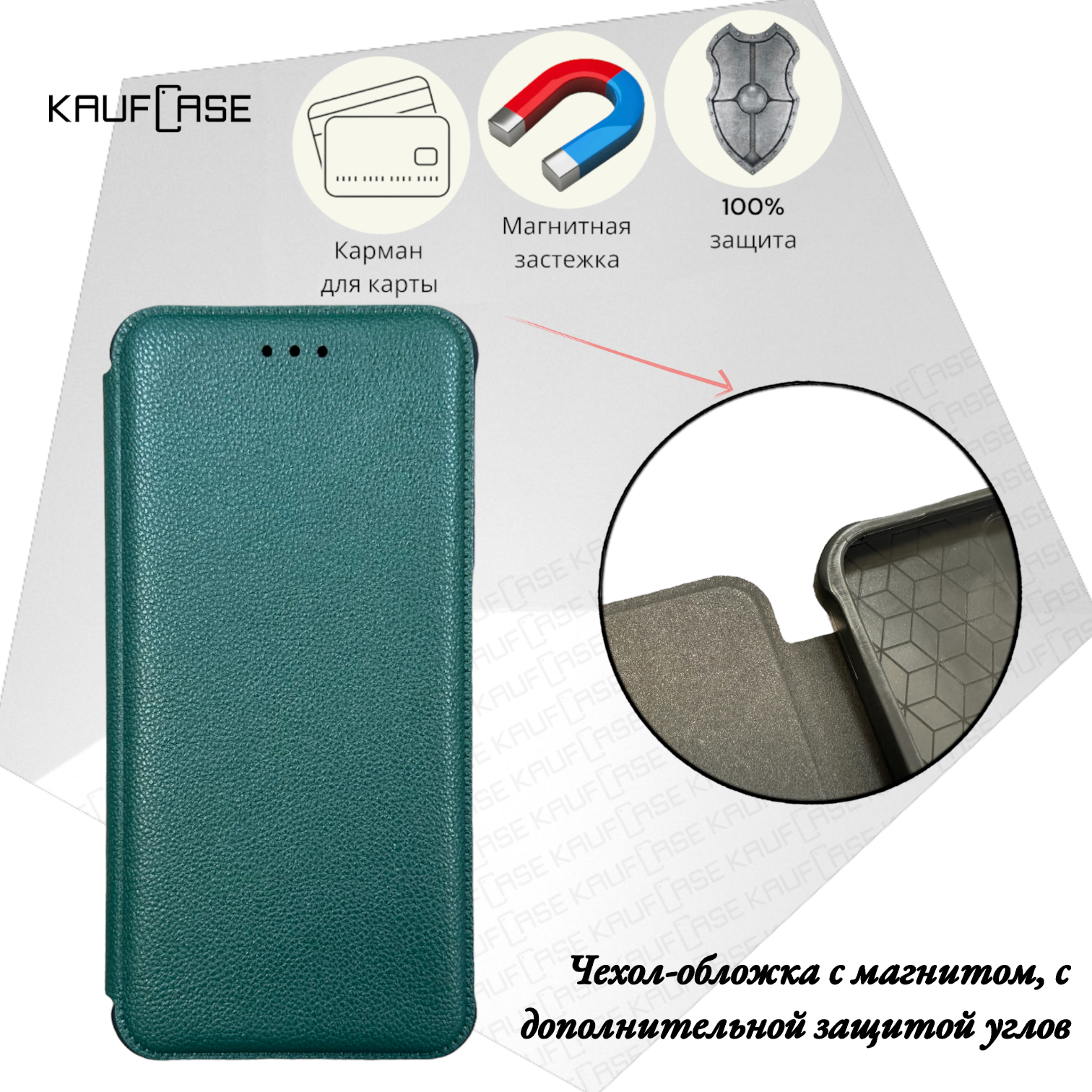 Тонкий и противоударный чехол-книжка Tecno Spark 20 Pro (6.78"), темно-зеленый. Текстура под кожу; Вырез под динамик; Карман для карты информация: