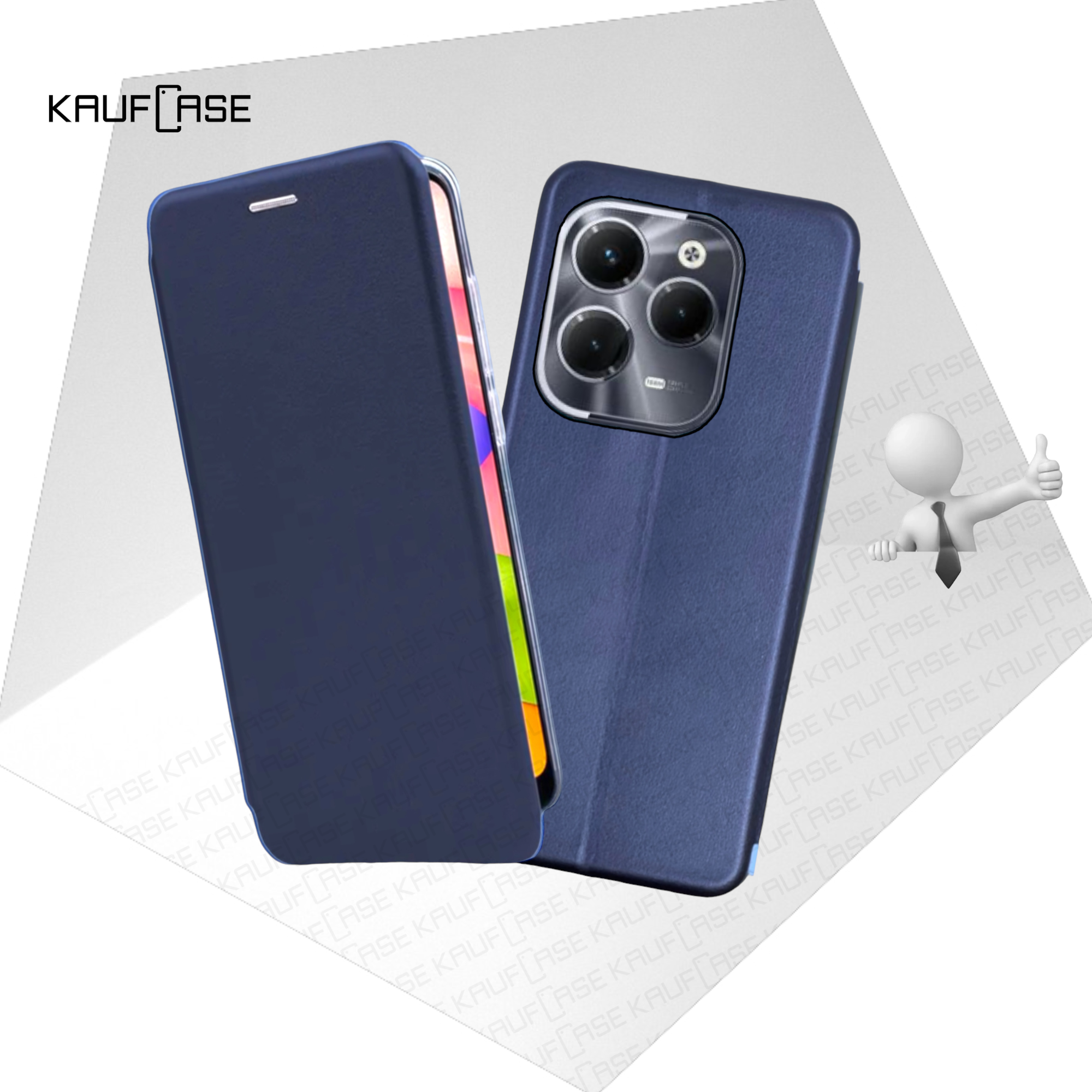 Чехол книжка для телефона Tecno Spark 20 Pro (6.78"), темно-синий. Текстура под кожу информация: