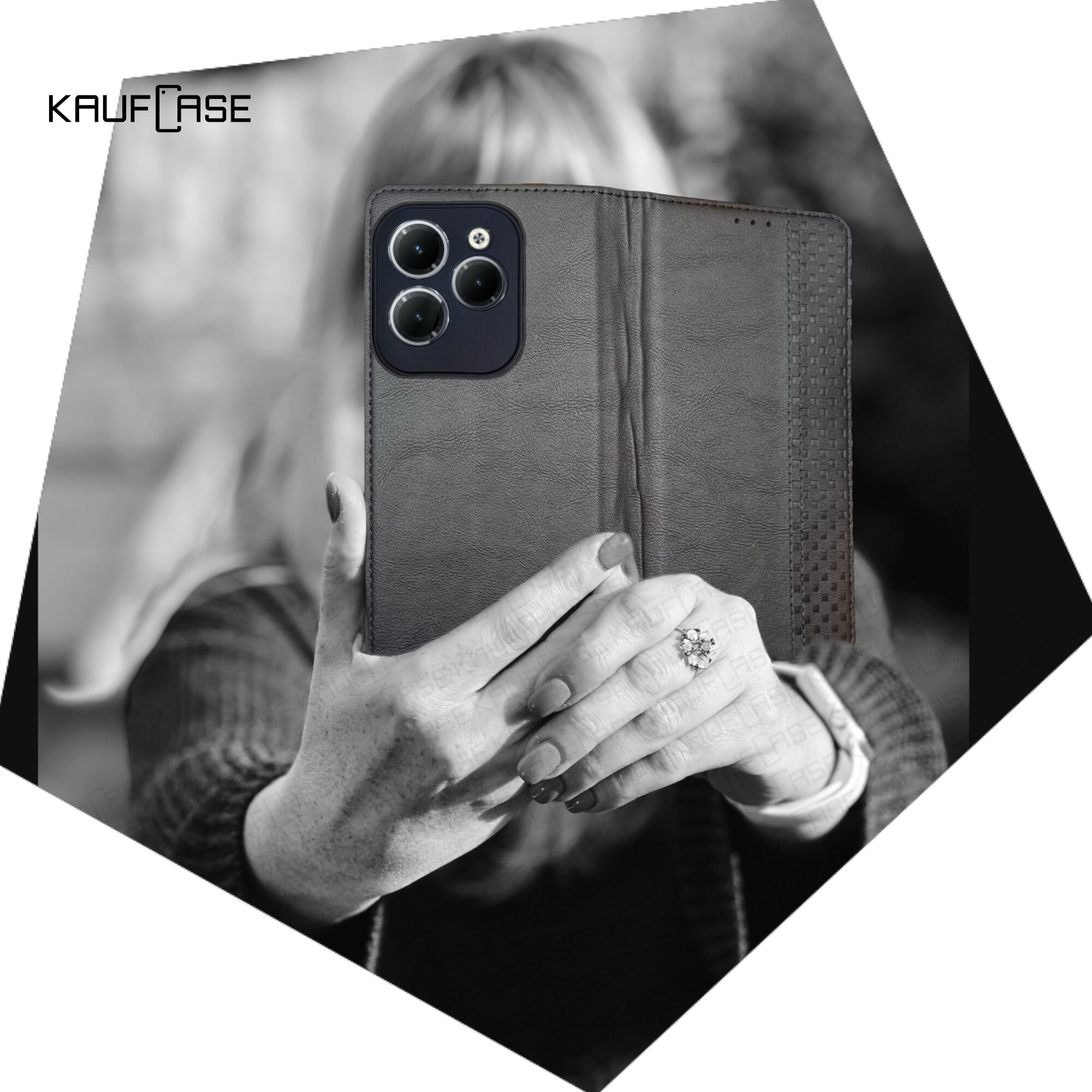 Чехол книжка для телефона Tecno Spark 20 Pro (6.78"), черный. Плетеная структура 449 ₽