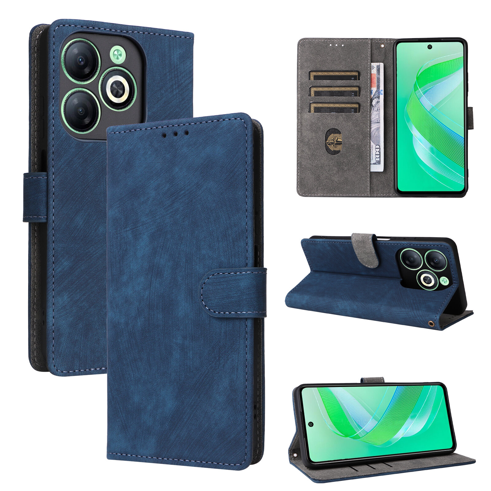 Чехол книжка для Infinix Smart 8 c магнитной застежкой / Инфиникс Смарт 8 c отделением под карты (синяя) информация: