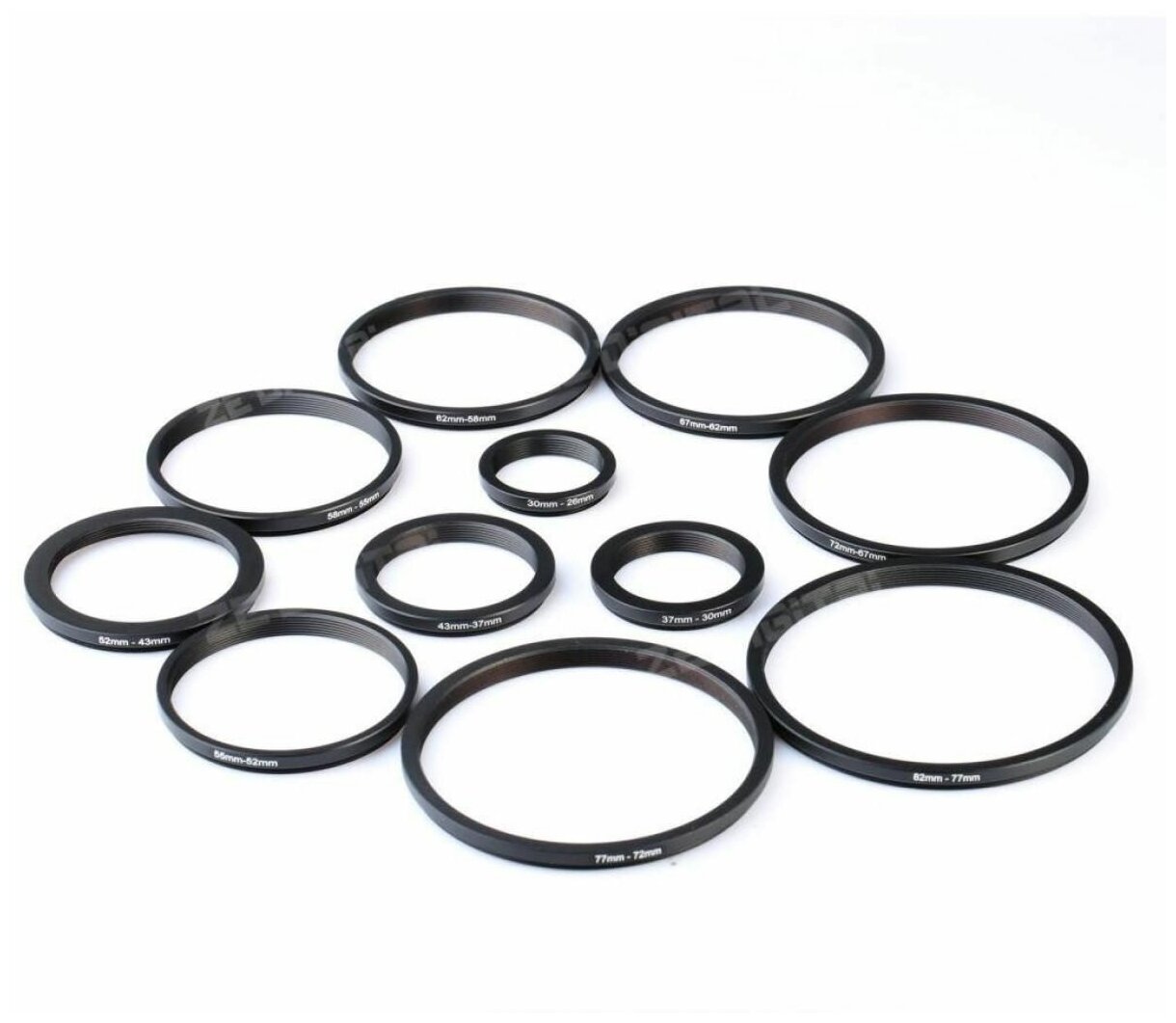 | Дополнительная информация | Комплект из 11 понижающих переходных колец: 30-26mm, 37-30mm, 43-37mm, 52-43mm, 55-52mm, 58-55mm, 62-58mm, 67-62mm, 72-67mm, 77-72mm, 82-77mm |