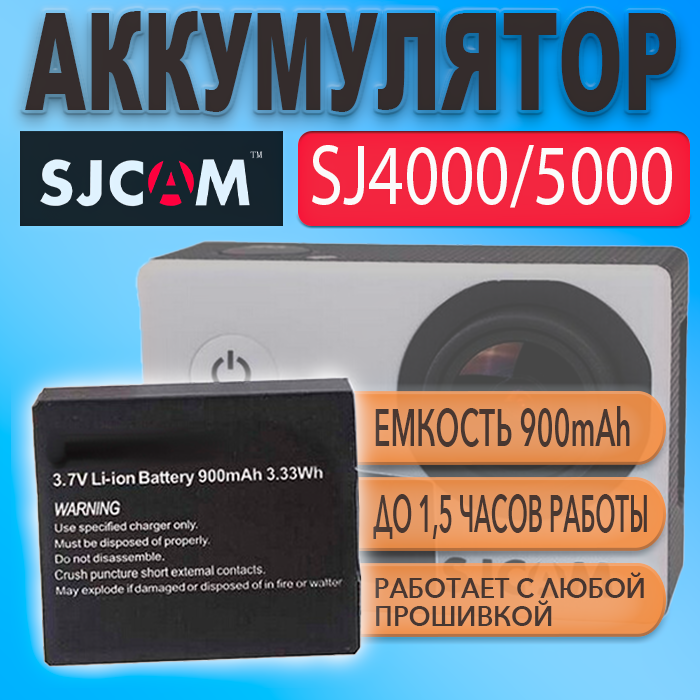 Аккумулятор для экшн камеры SJCAM SJ4000 SJ5000 900mAh информация: