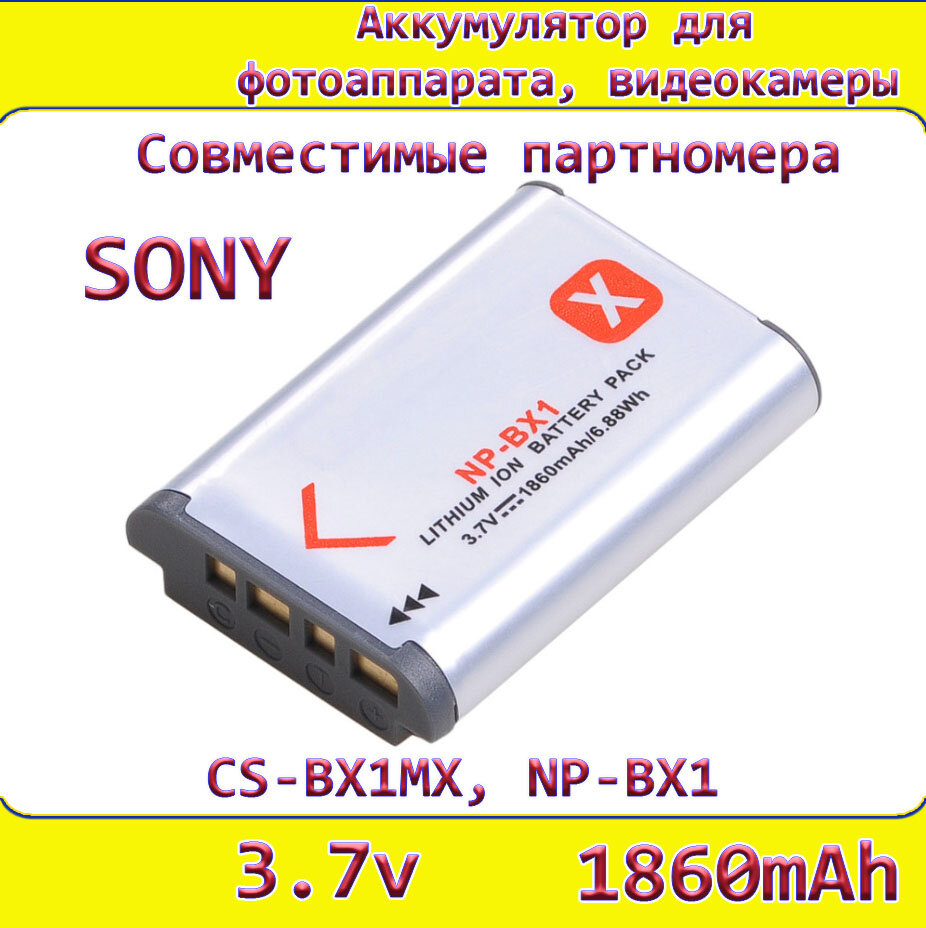Аккумулятор NP-BX1 3.7V 1860mAh для камер Sony X3000,RX100,AS300,DSC-HX300,AS100V,WX350,X1000V,HX50,HX400,HX60,X3000R,HDR-AS200V,AS30V информация: