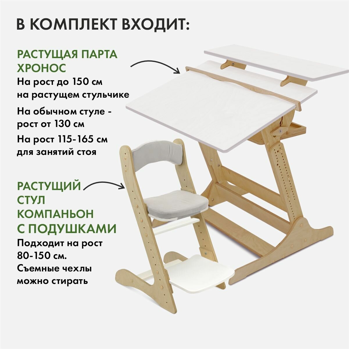 Парта для школьника Хронос и растущий стул Компаньон, комплект информация: