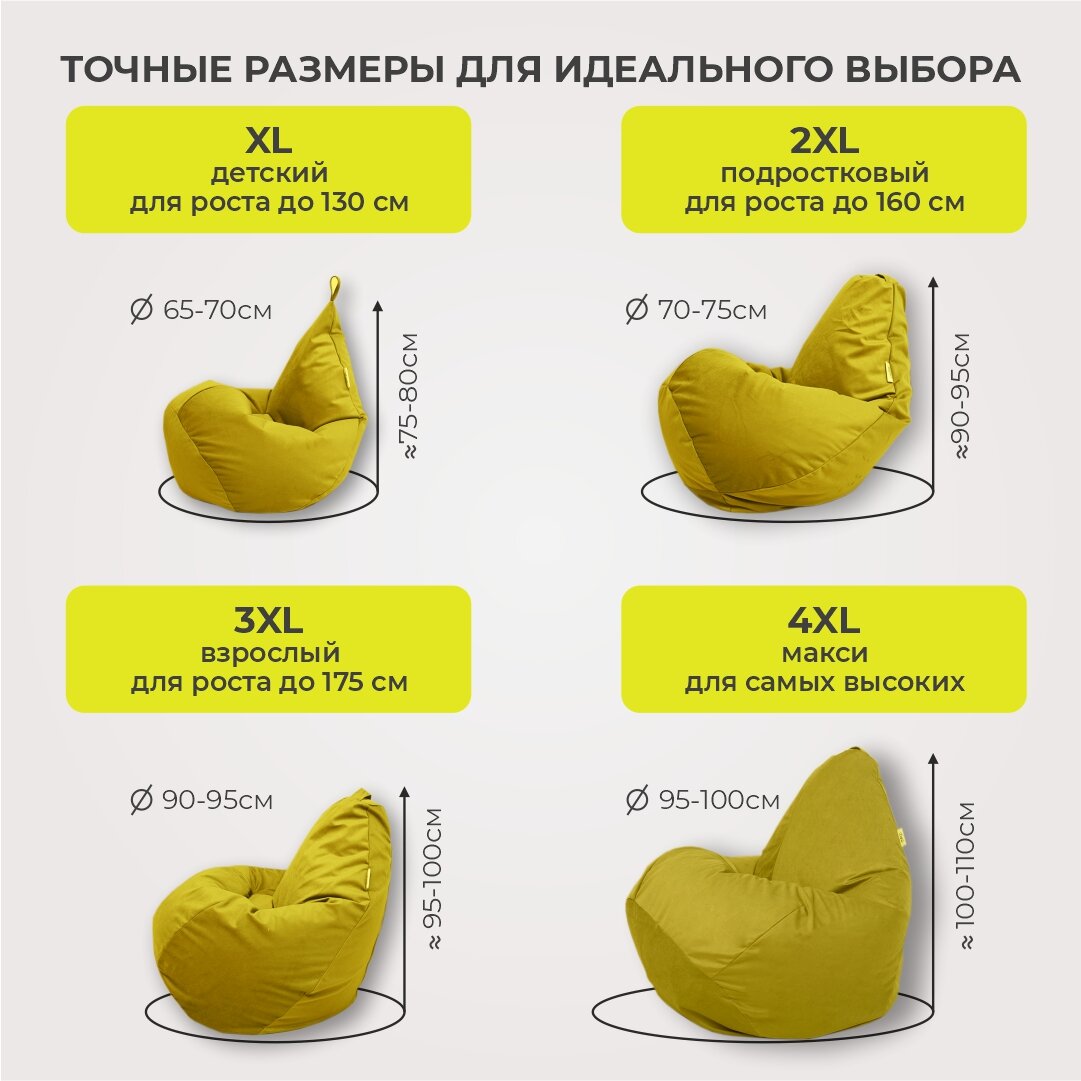 10 цен на Кресло мешок Груша 4XL желто-зеленый/желтый/оливковый Велюр