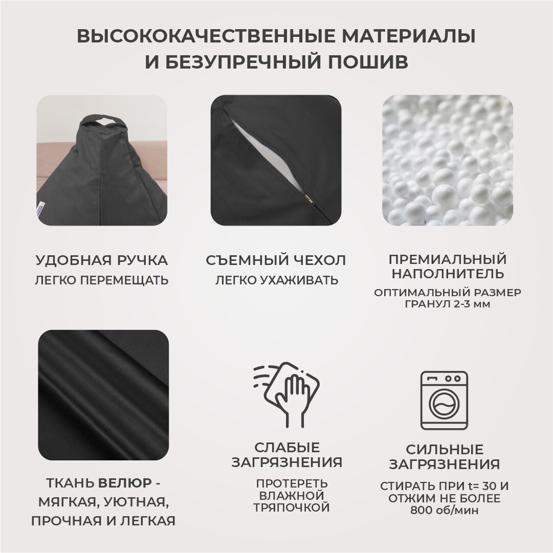Кресло мешок Груша 4XL черный Велюр информация: