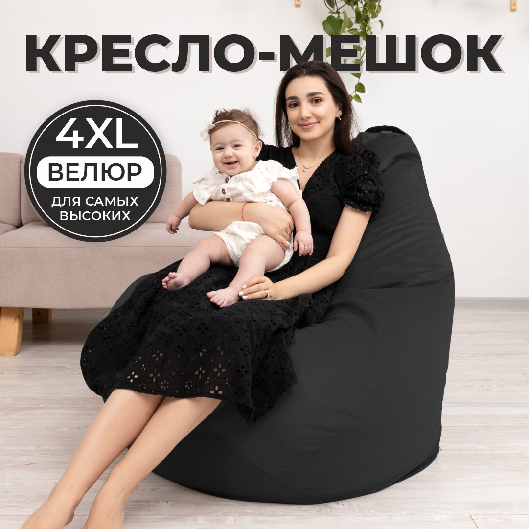 10 цен на Кресло мешок Груша 4XL черный Велюр