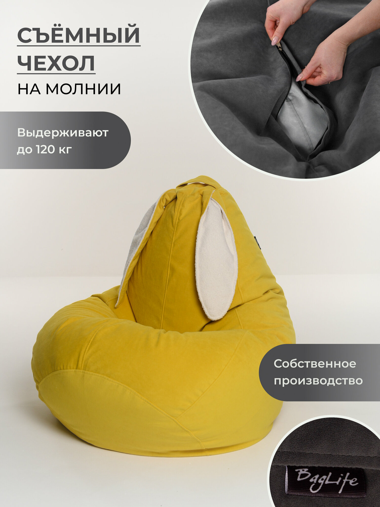 Кресло мешок груша XXL с ушками желтый информация: