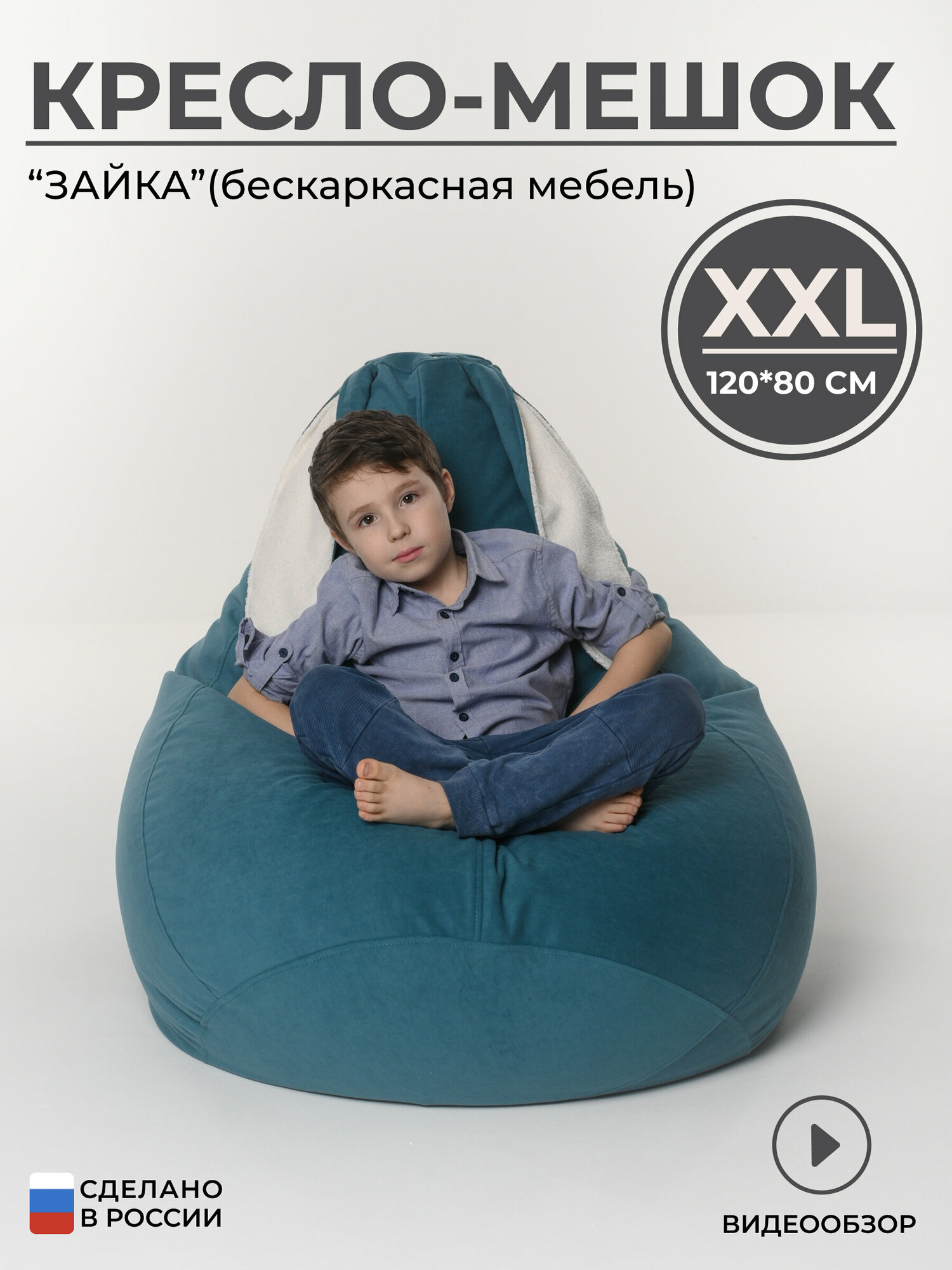 Кресло мешок груша XXL с ушками голубой 6 900 ₽