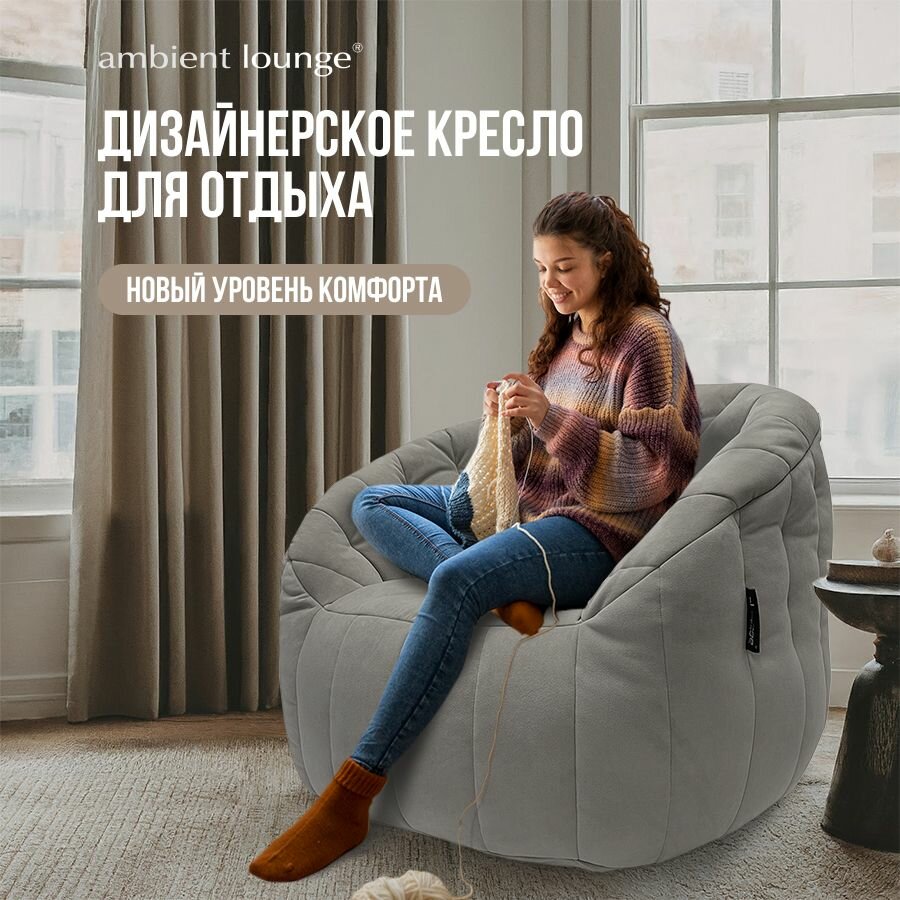 10 цен на Бескаркасное дизайнерское кресло для отдыха aLounge - Butterfly Sofa - Tundra Spring (велюр, светло-серый) - лаунж мебель в гостиную, спальню, детскую, офис, на балкон