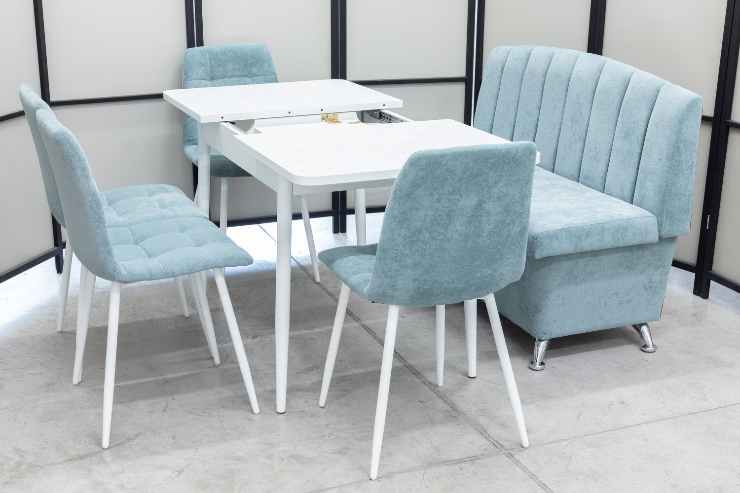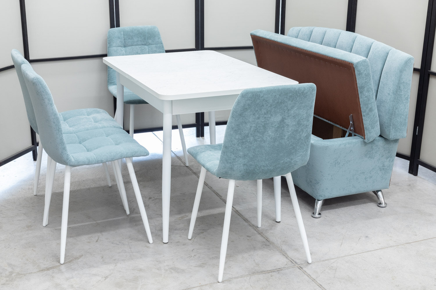 10 цен на Обеденная группа Альт-3 Кватро, стол белый Ост термопластик, 110(140)х70 см, обивка дивана антивандальная, моющаяся, антикоготь, цвет ментол