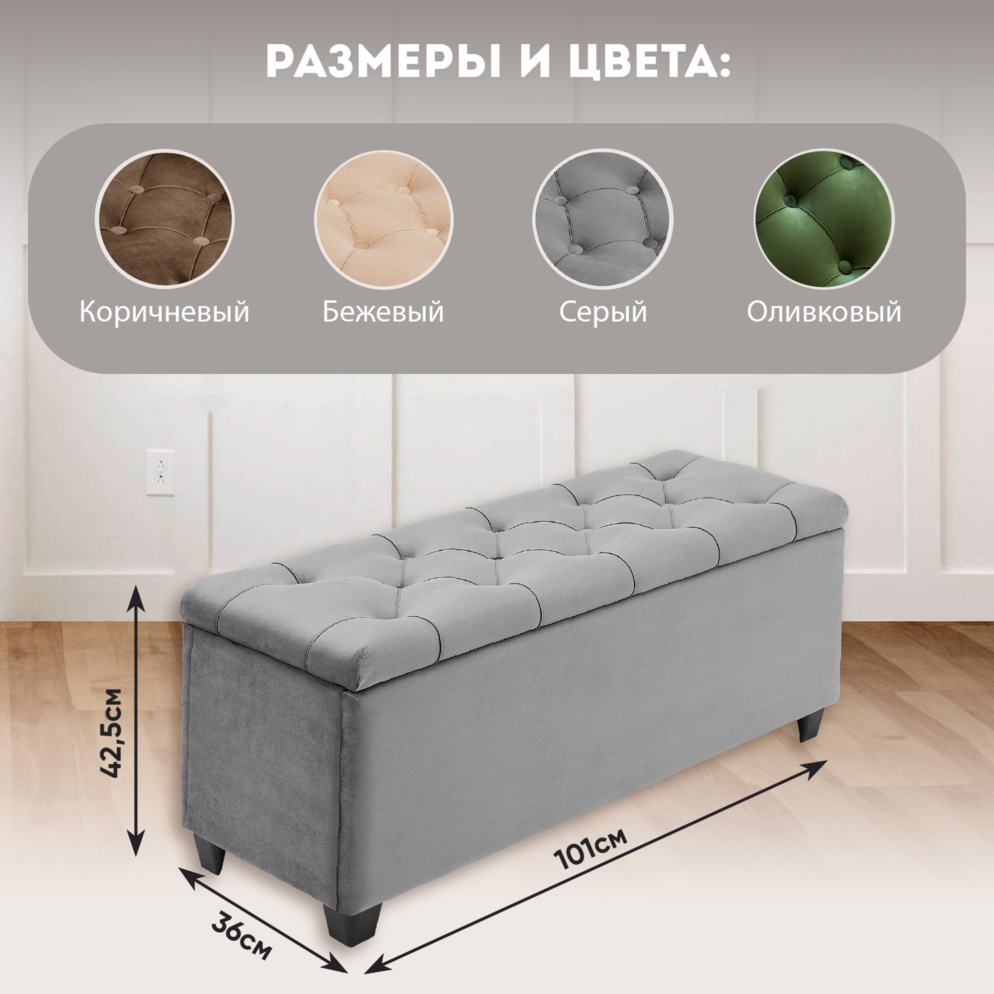 10 цен на Пуф банкетка в прихожую с ящиком для хранения Классик 101х36х42, обивка велюр серый, Ами Мебель, Беларусь