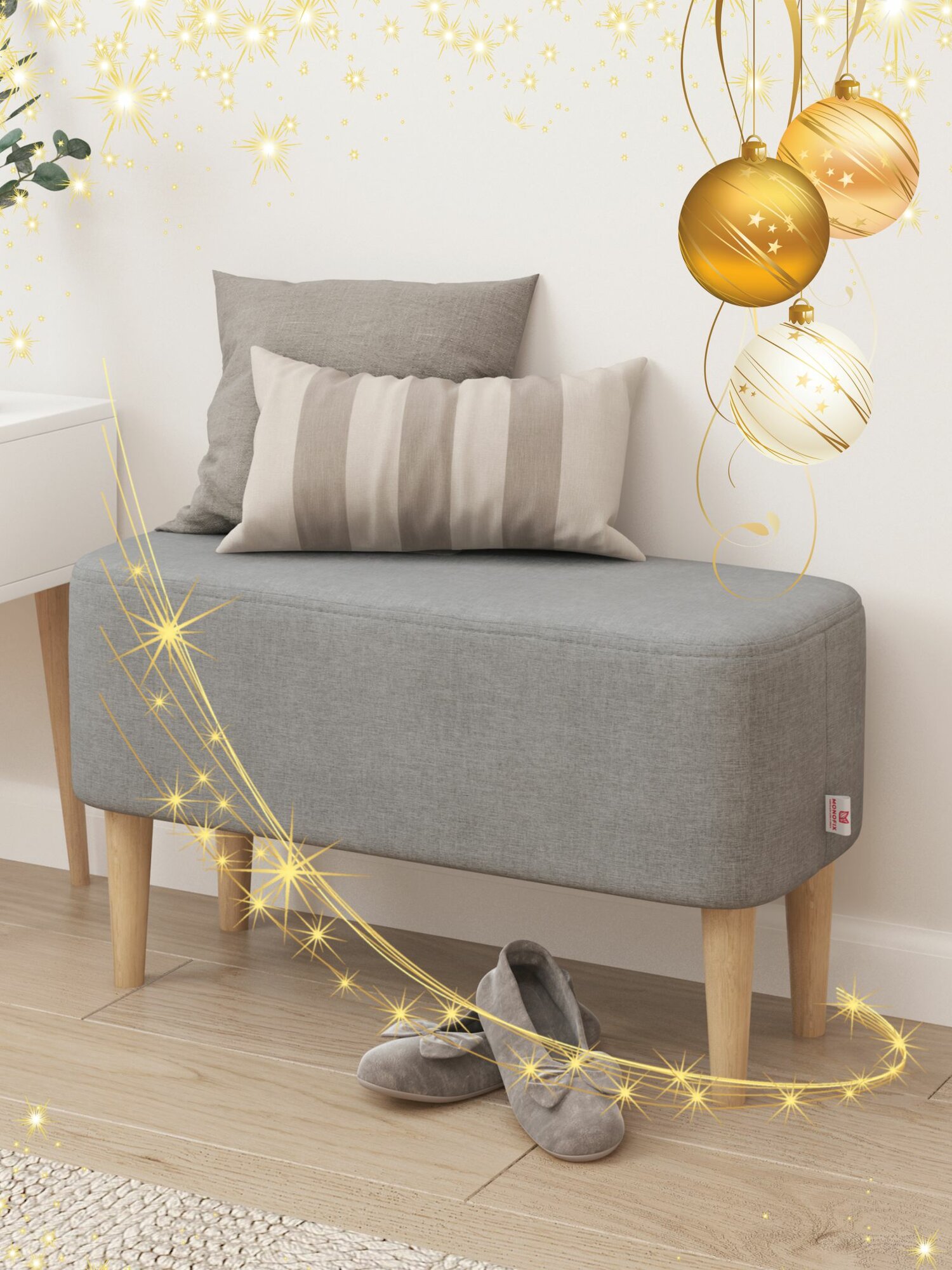 10 цен на Банкетка киус велюр серый, в прихожую, в спальню, в детскую