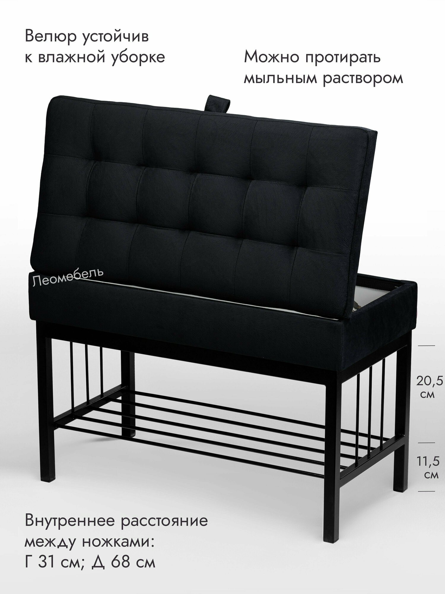 Банкетка в прихожую Леомебель обувница с сиденьем 76х53х39 Черный-черный информация: