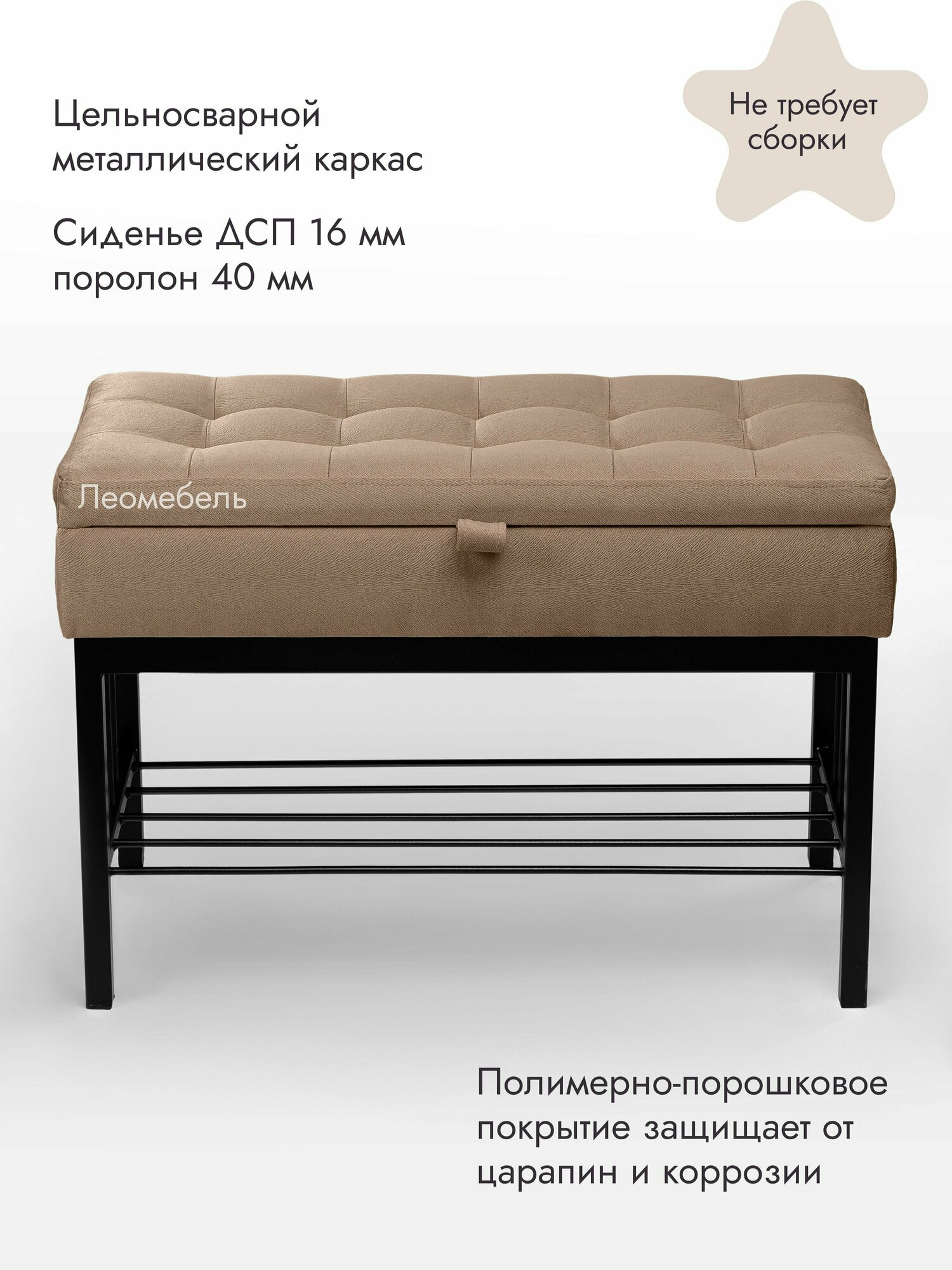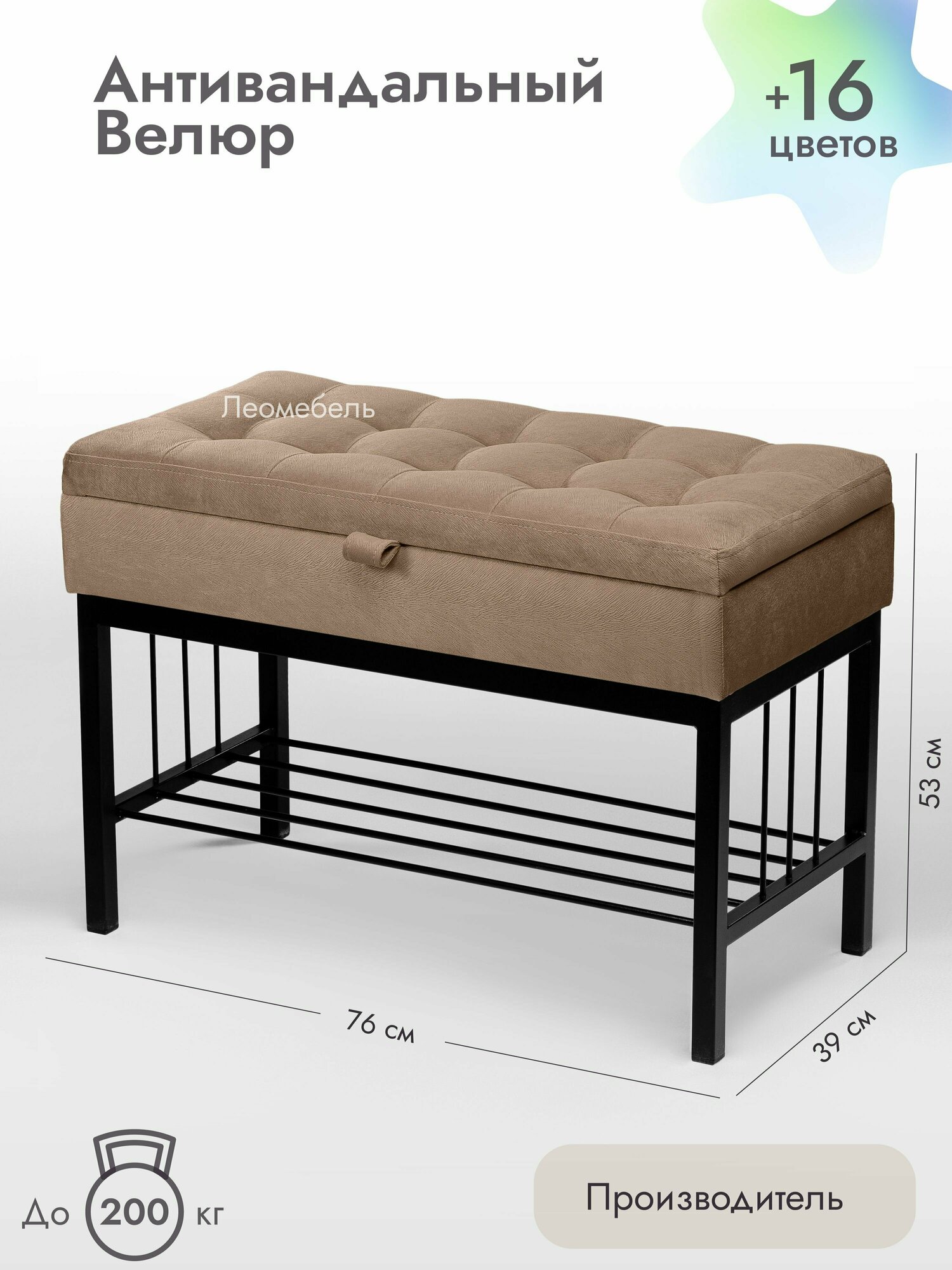 Банкетка в прихожую Леомебель обувница с сиденьем 76х53х39 Черный-светло-коричневый информация: