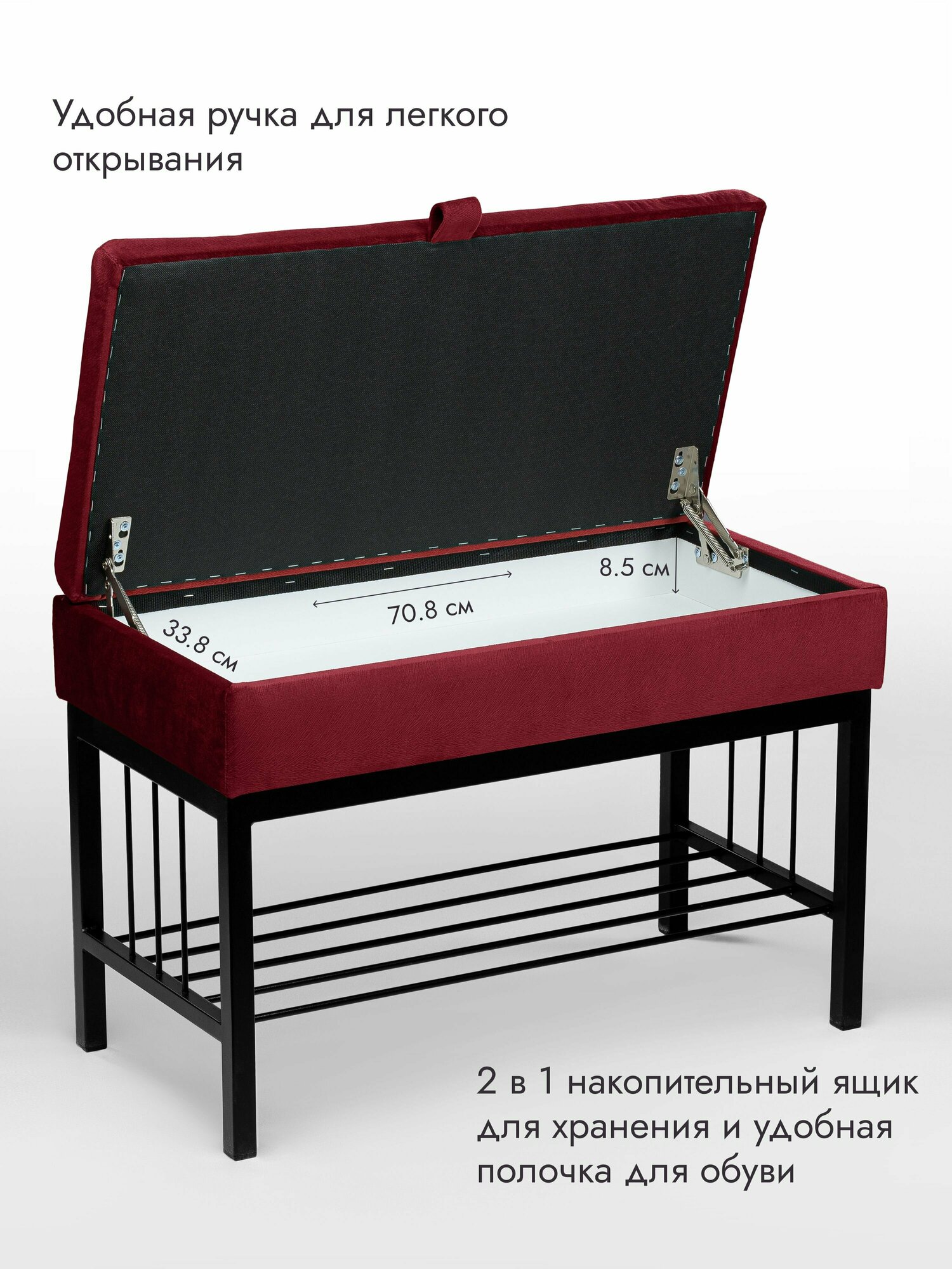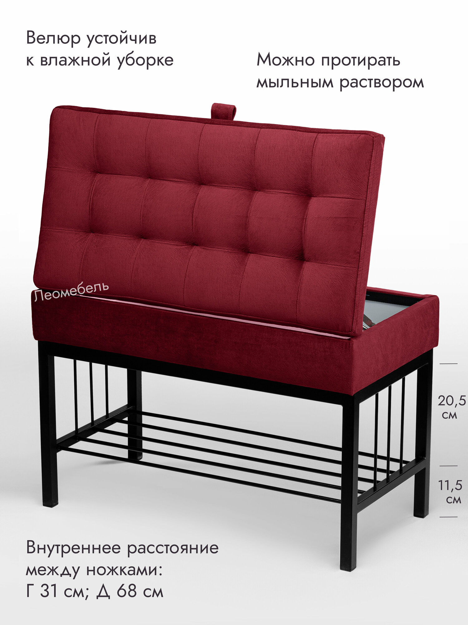Банкетка в прихожую Леомебель обувница с сиденьем 76х53х39 Черный-красный информация: