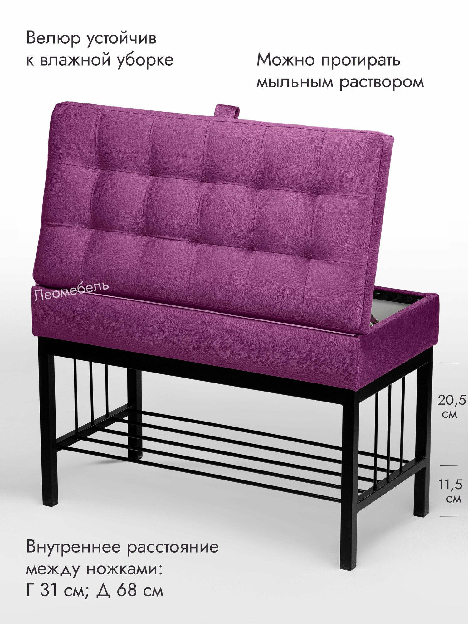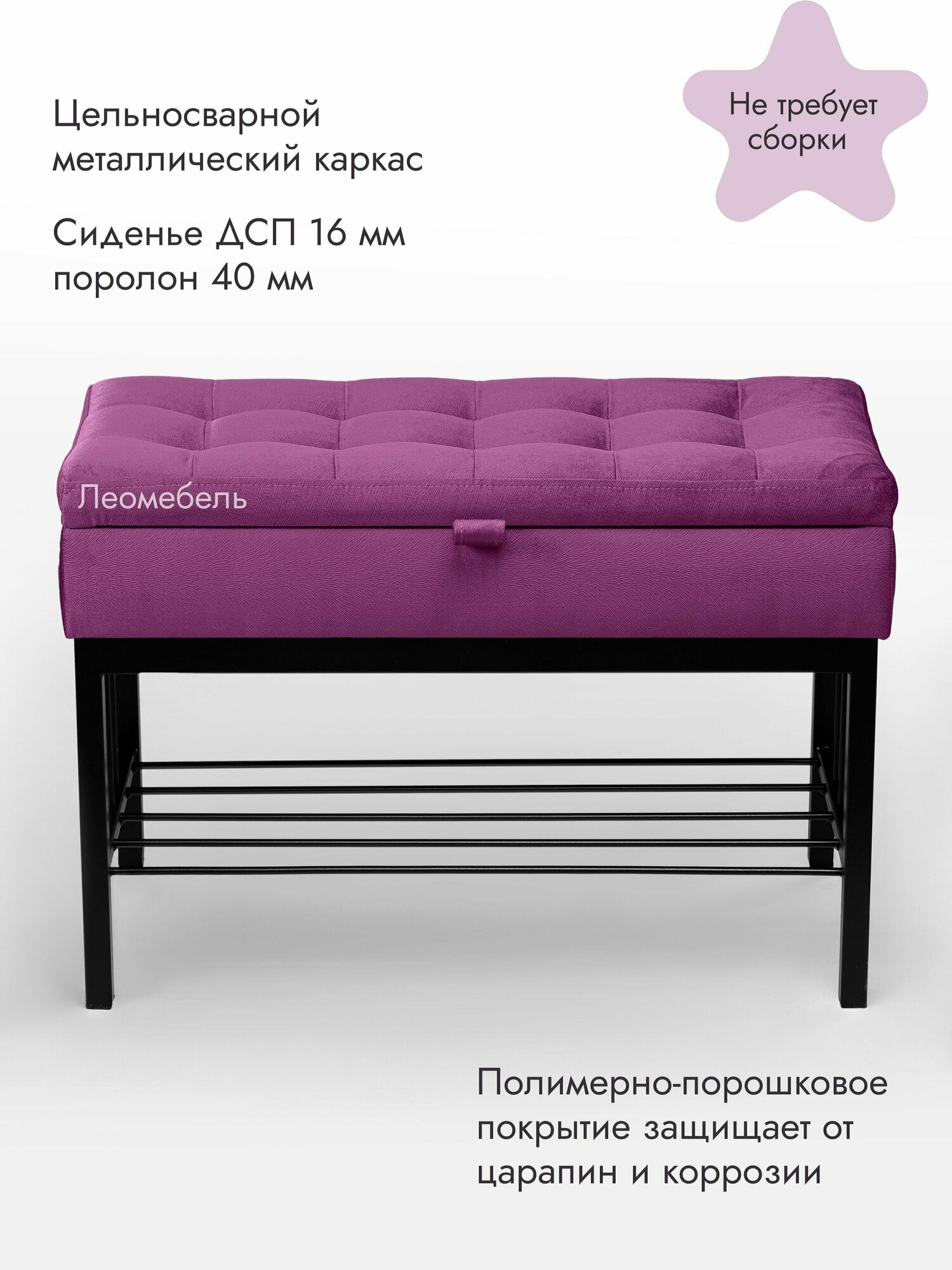 Банкетка в прихожую Леомебель обувница с сиденьем 76х53х39 Черный-фиолетовый 8 861 ₽