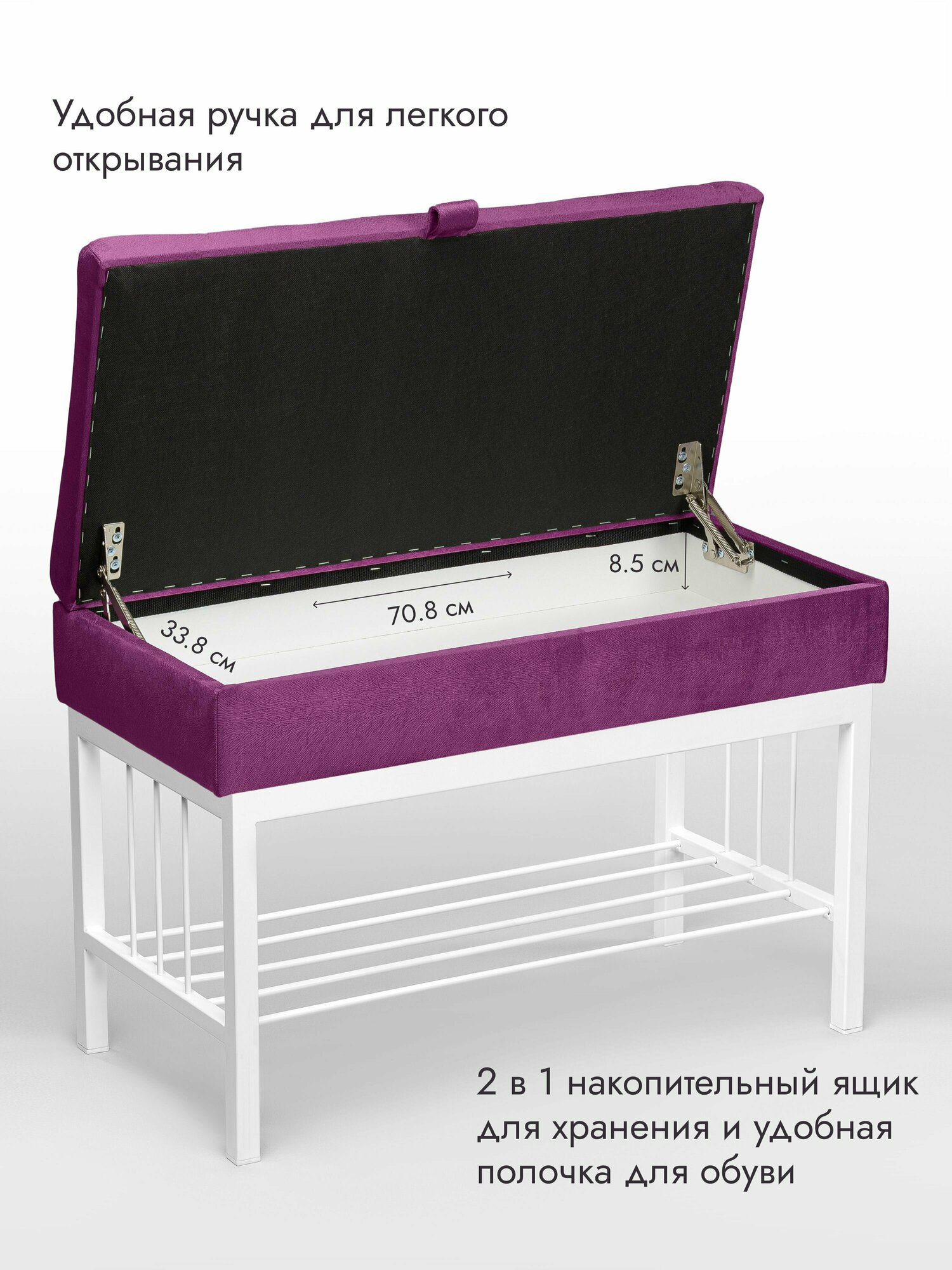 Банкетка в прихожую Леомебель обувница с сиденьем 76х53х39 Белый-фиолетовый 8 861 ₽
