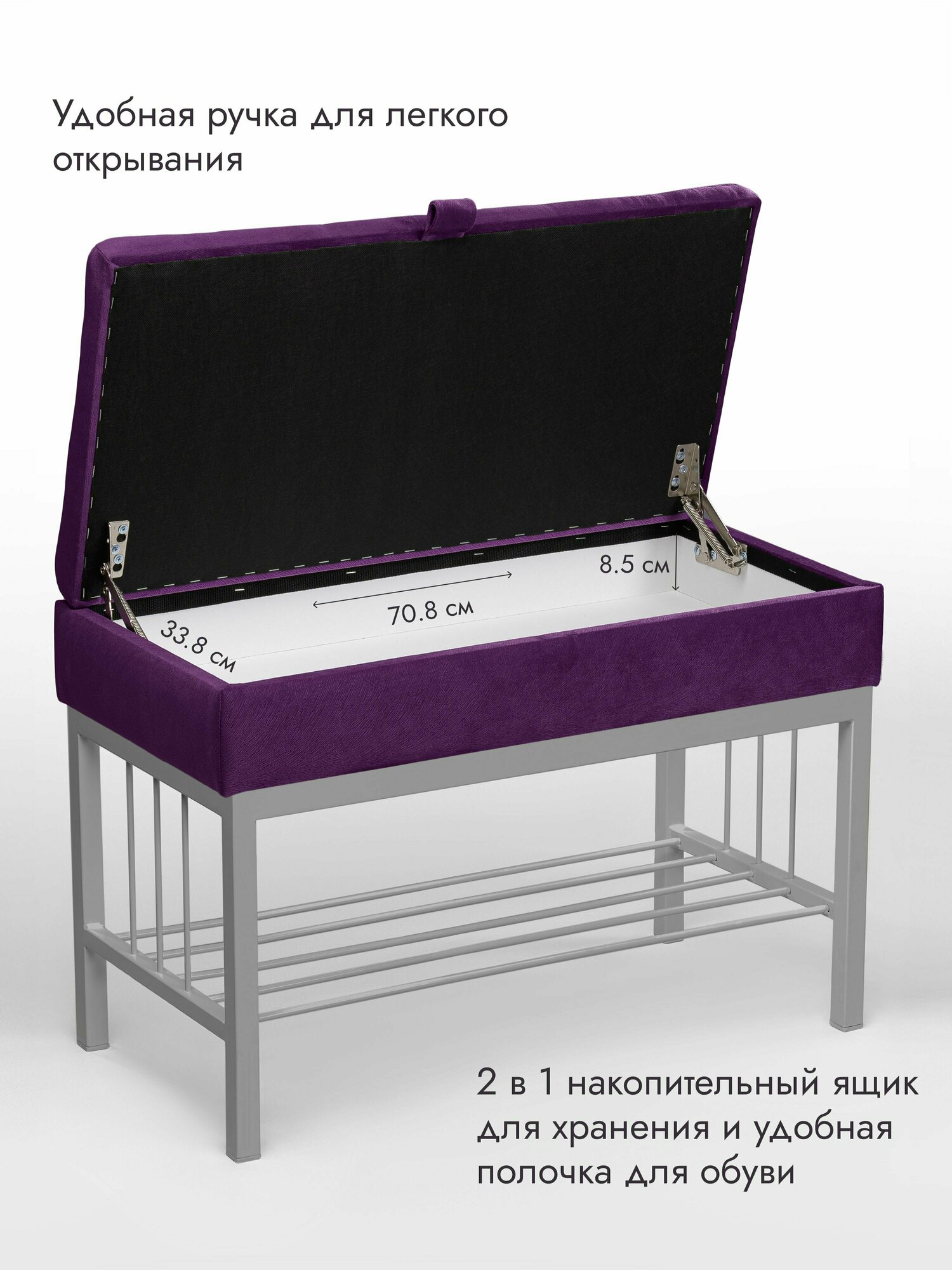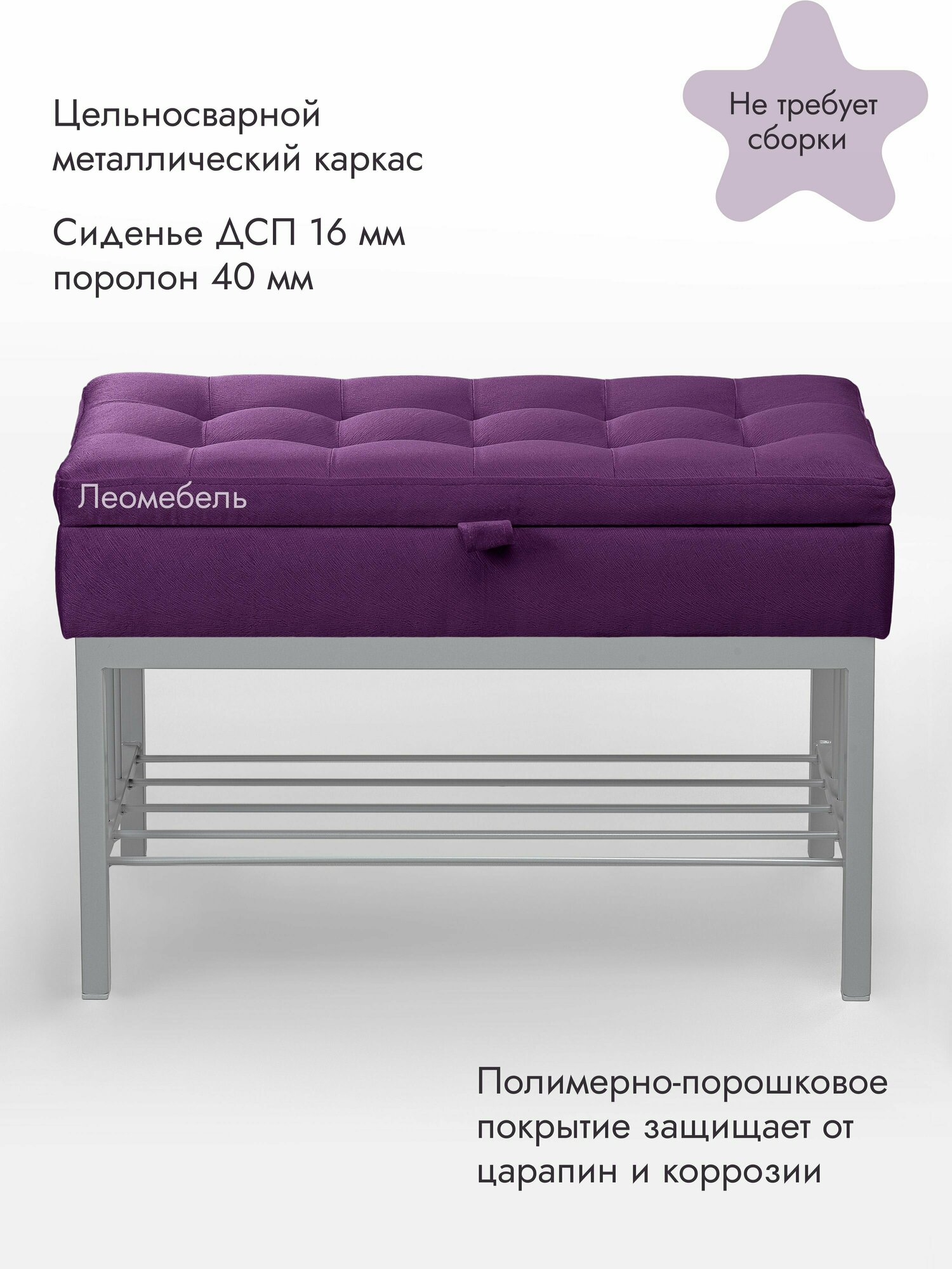 Банкетка в прихожую Леомебель обувница с сиденьем 76х53х39 Серый-фиолетовый информация: