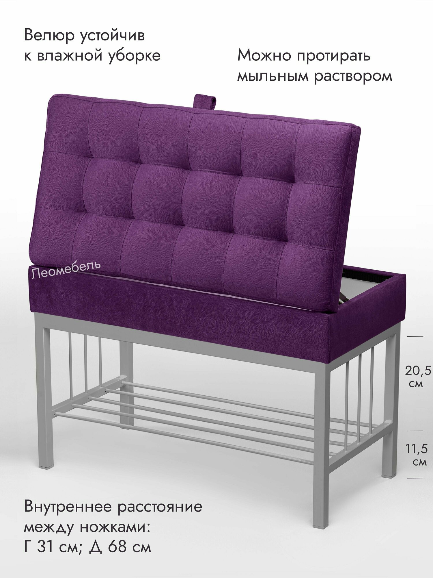 Отзывы на Банкетка в прихожую Леомебель обувница с сиденьем 76х53х39 Серый-фиолетовый