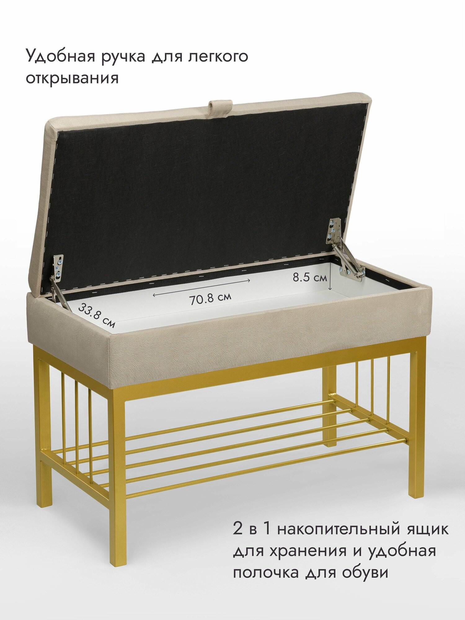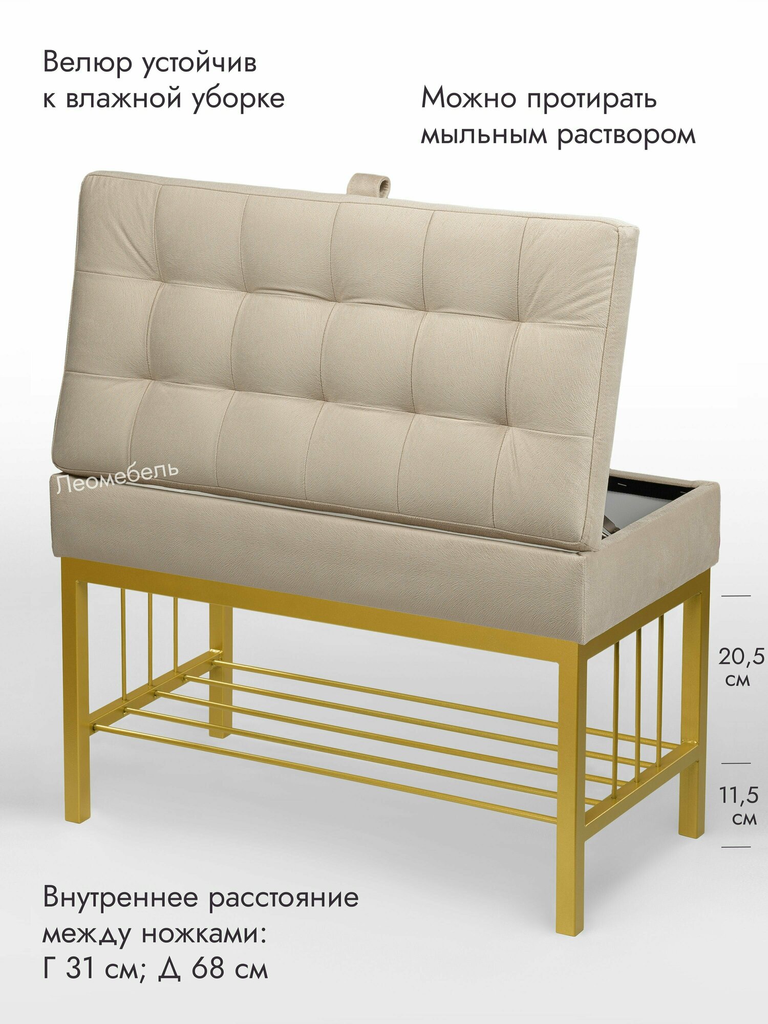Банкетка в прихожую Леомебель обувница с сиденьем 76х53х39 Золотистый-бежевый информация:
