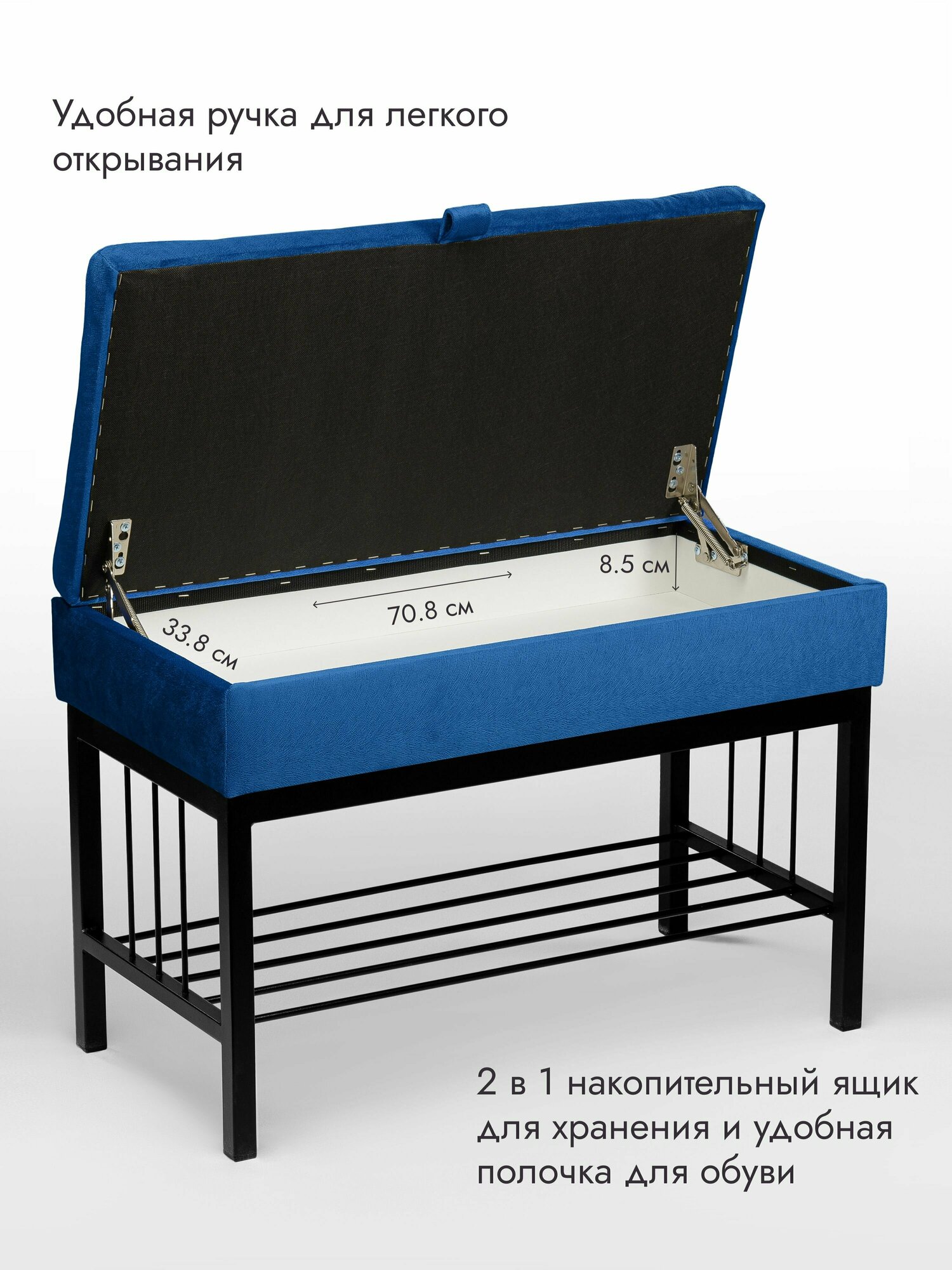Банкетка в прихожую Леомебель обувница с сиденьем 76х53х39 Черный-синий информация: