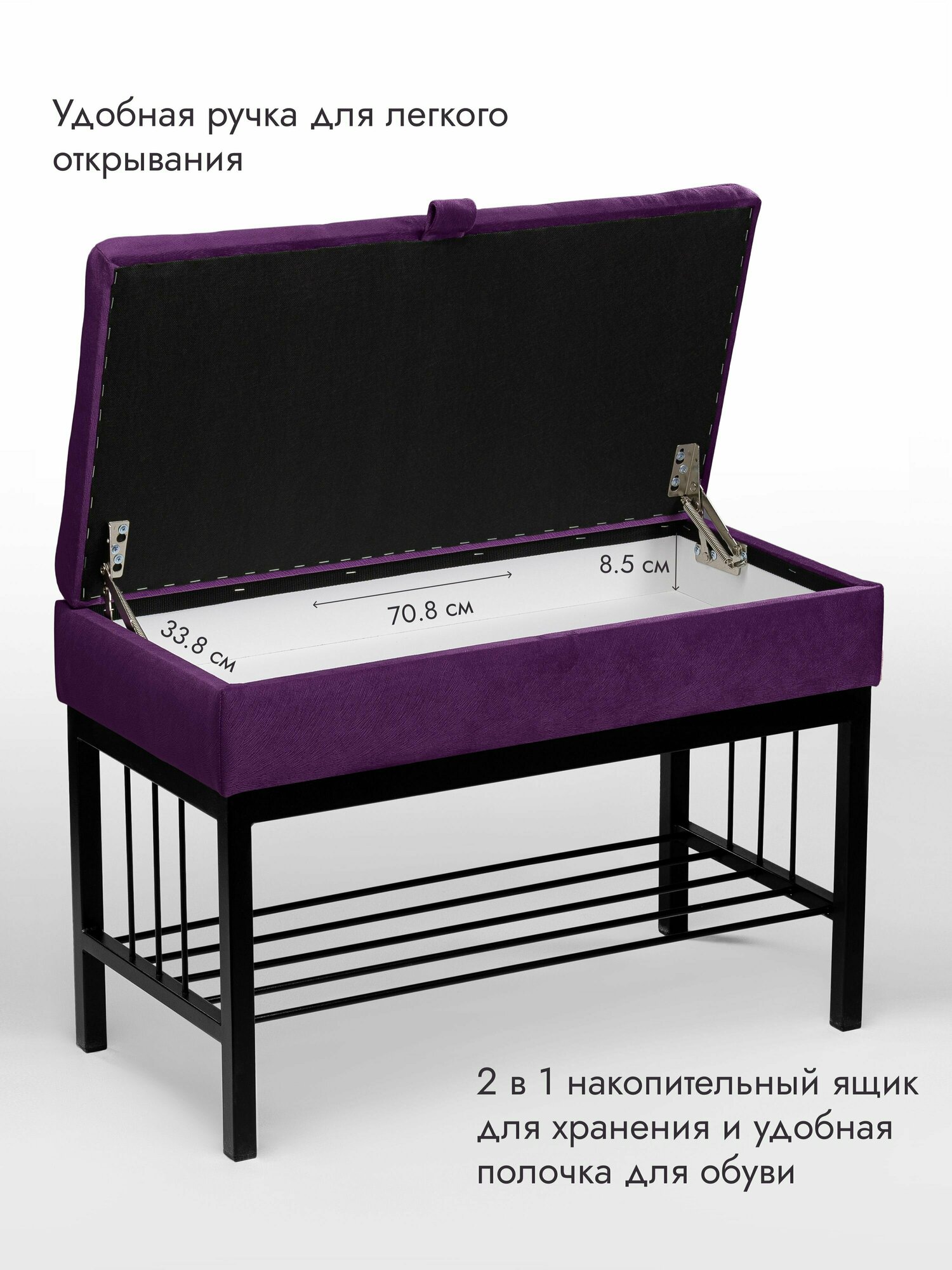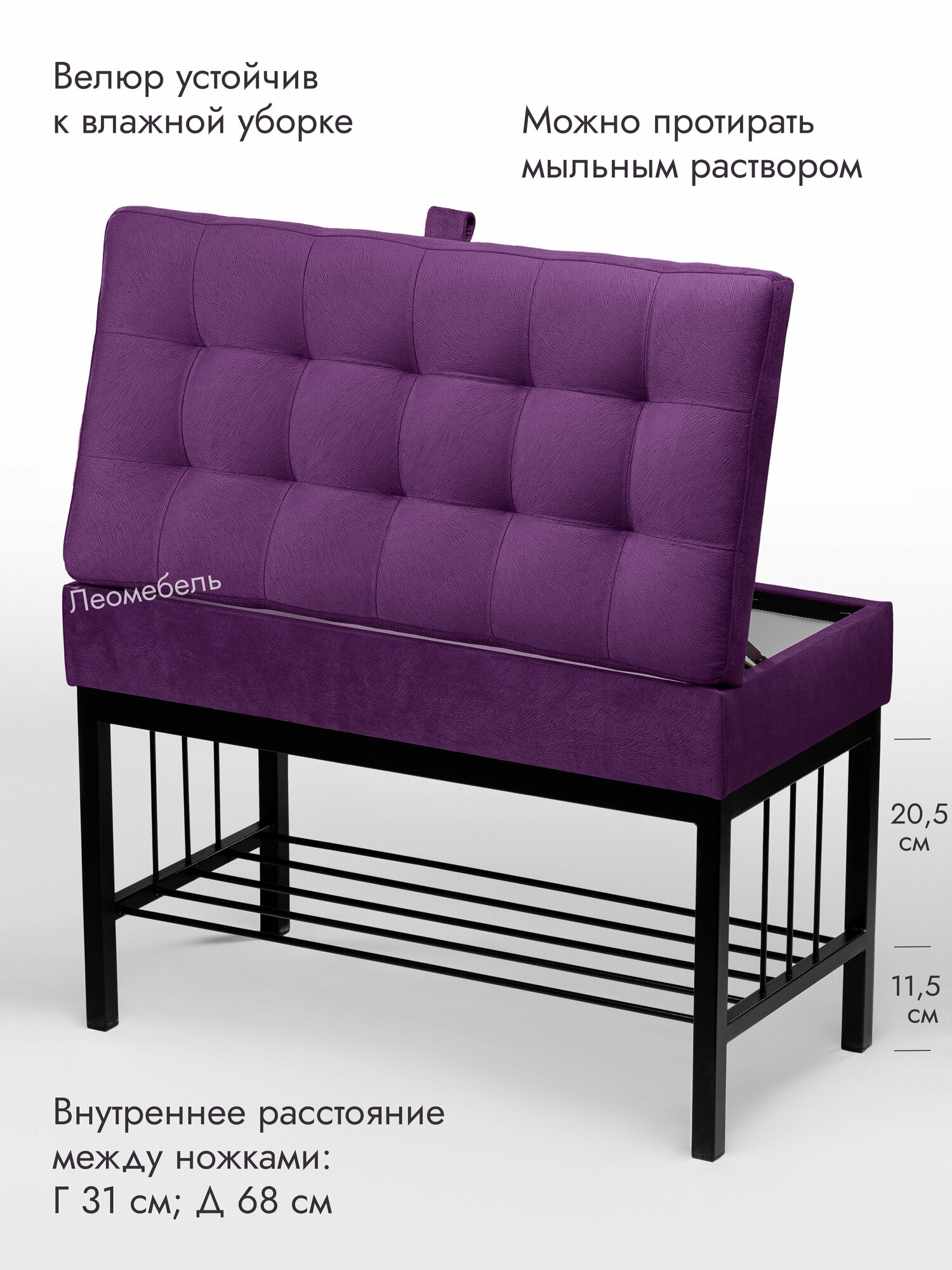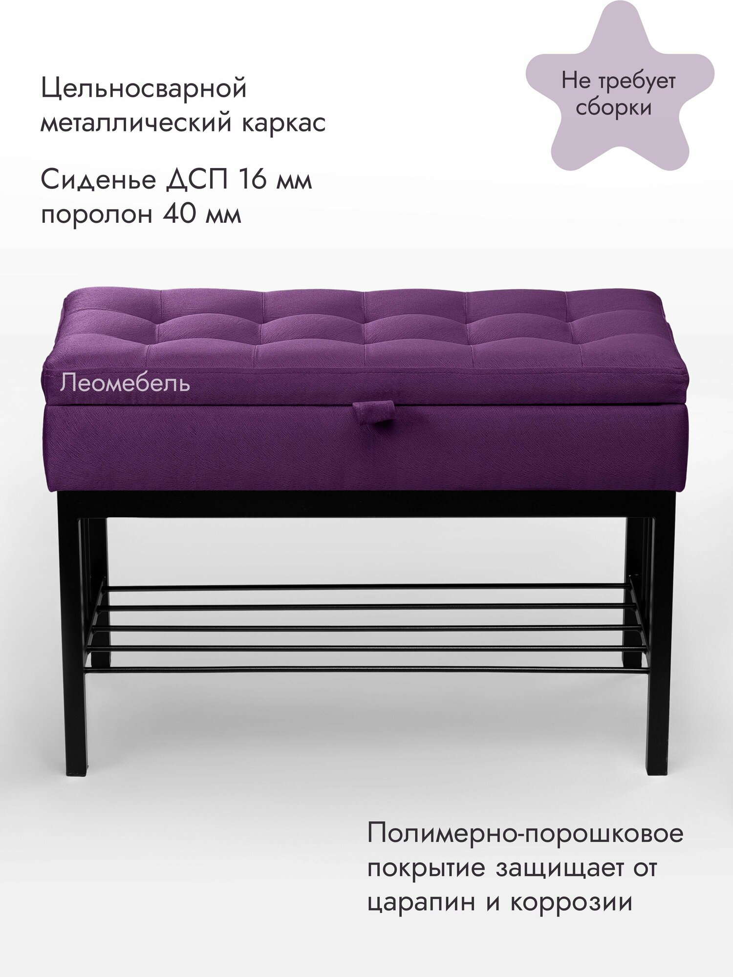 Банкетка в прихожую Леомебель обувница с сиденьем 76х53х39 Черный-фиолетовый информация: