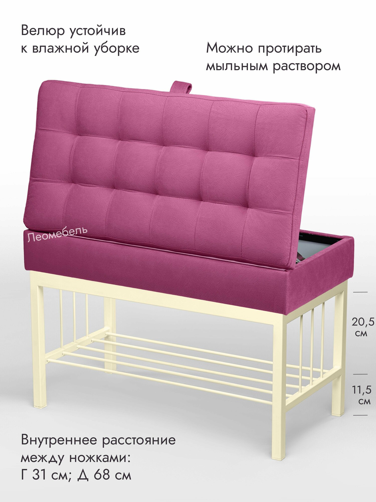 Банкетка в прихожую Леомебель обувница с сиденьем 76х53х39 Бежевый-розовый информация: