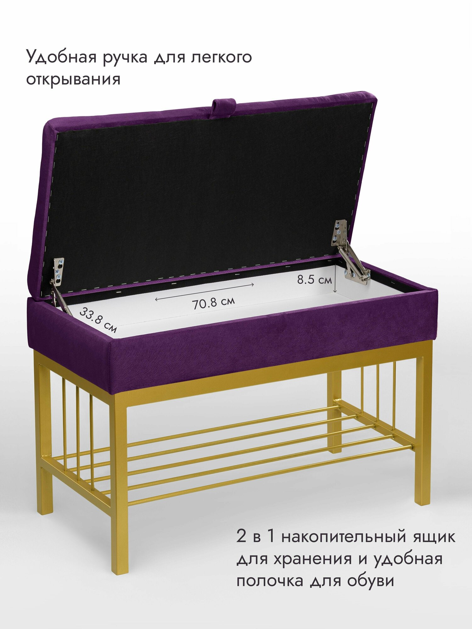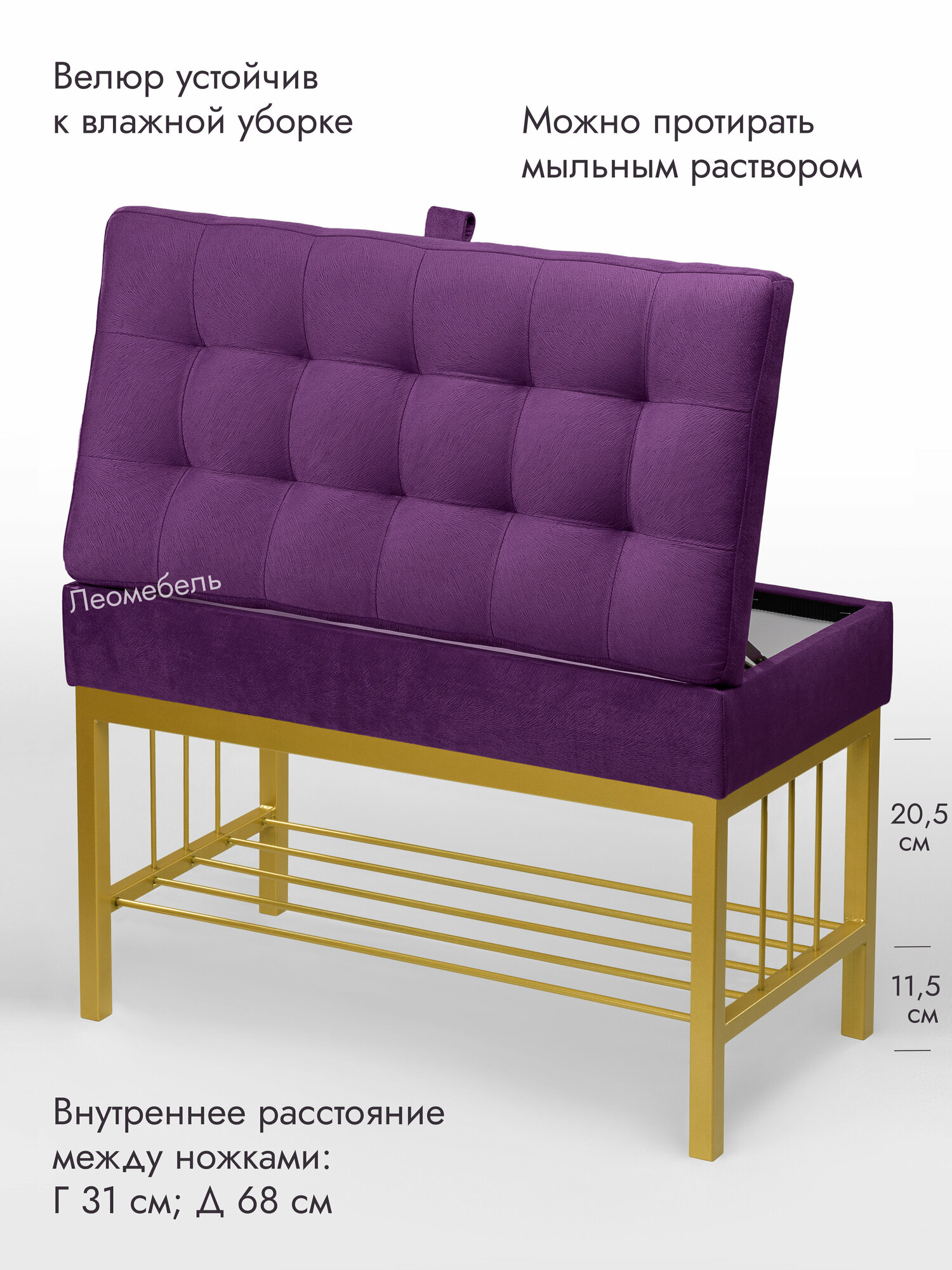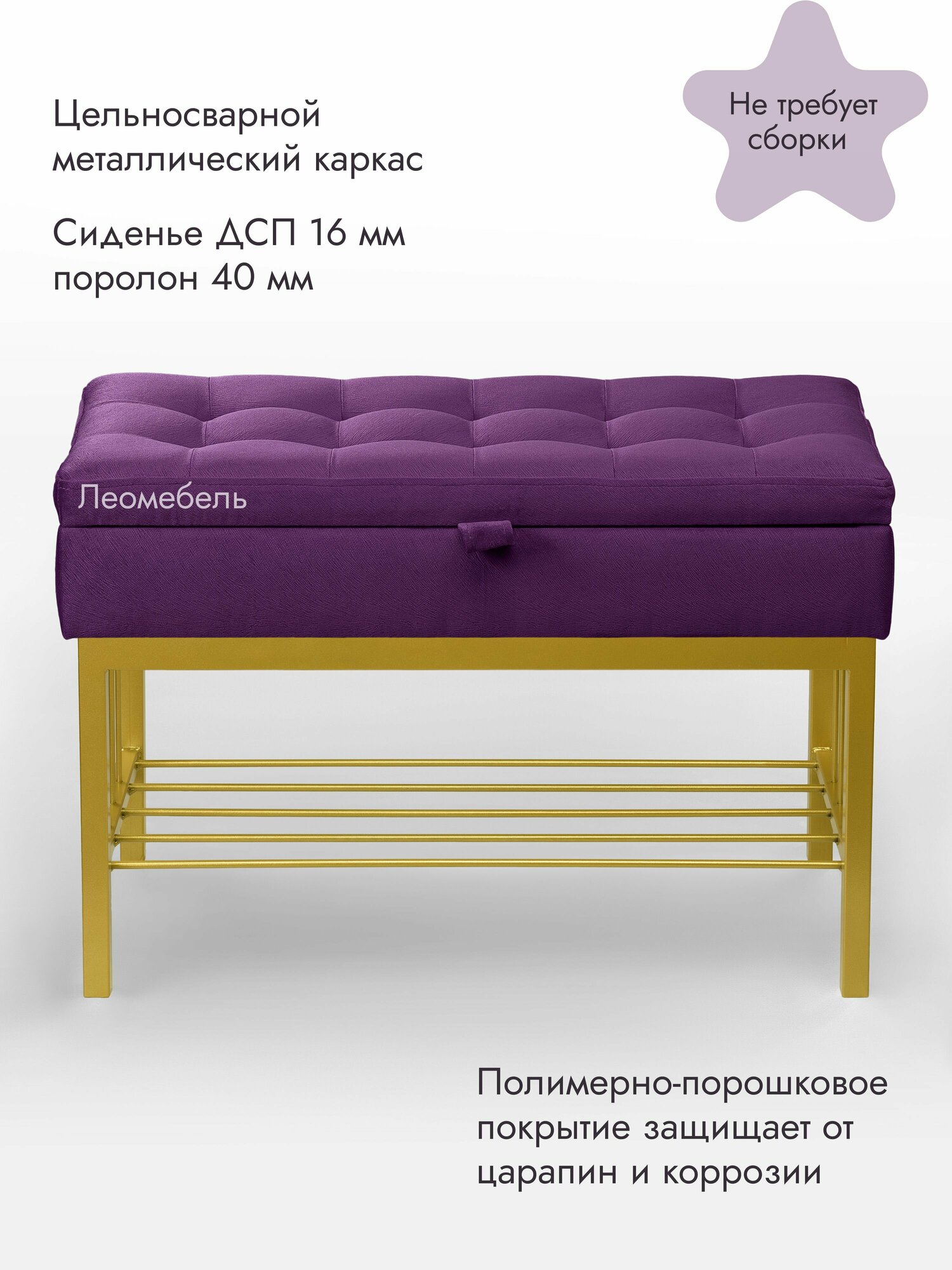 Банкетка в прихожую Леомебель обувница с сиденьем 76х53х39 Золотистый-фиолетовый информация: