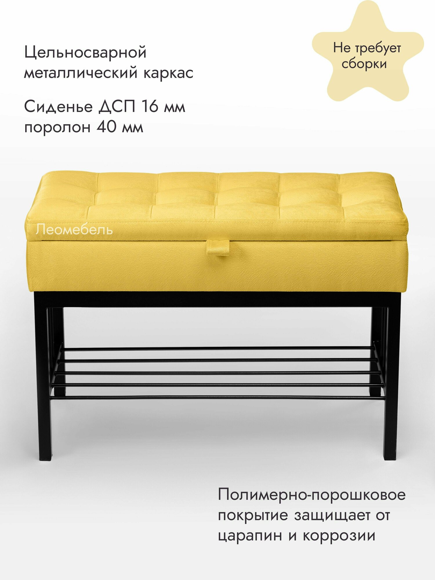 Банкетка в прихожую Леомебель обувница с сиденьем 76х53х39 Черный-желтый информация: