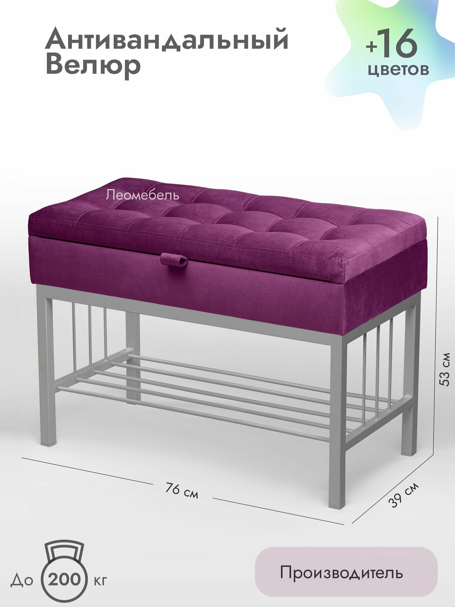 Банкетка в прихожую Леомебель обувница с сиденьем 76х53х39 Черный-фиолетовый 8 861 ₽