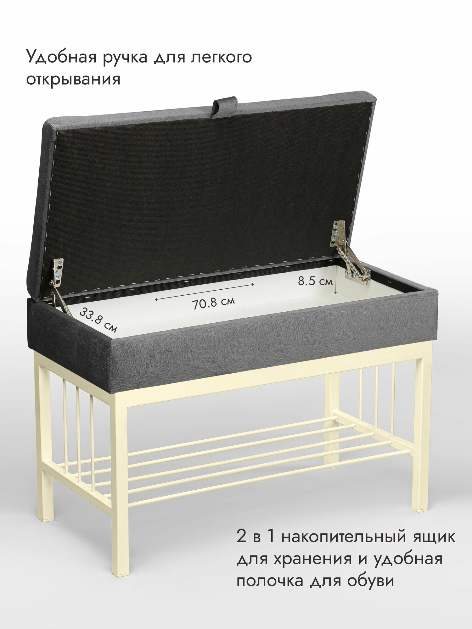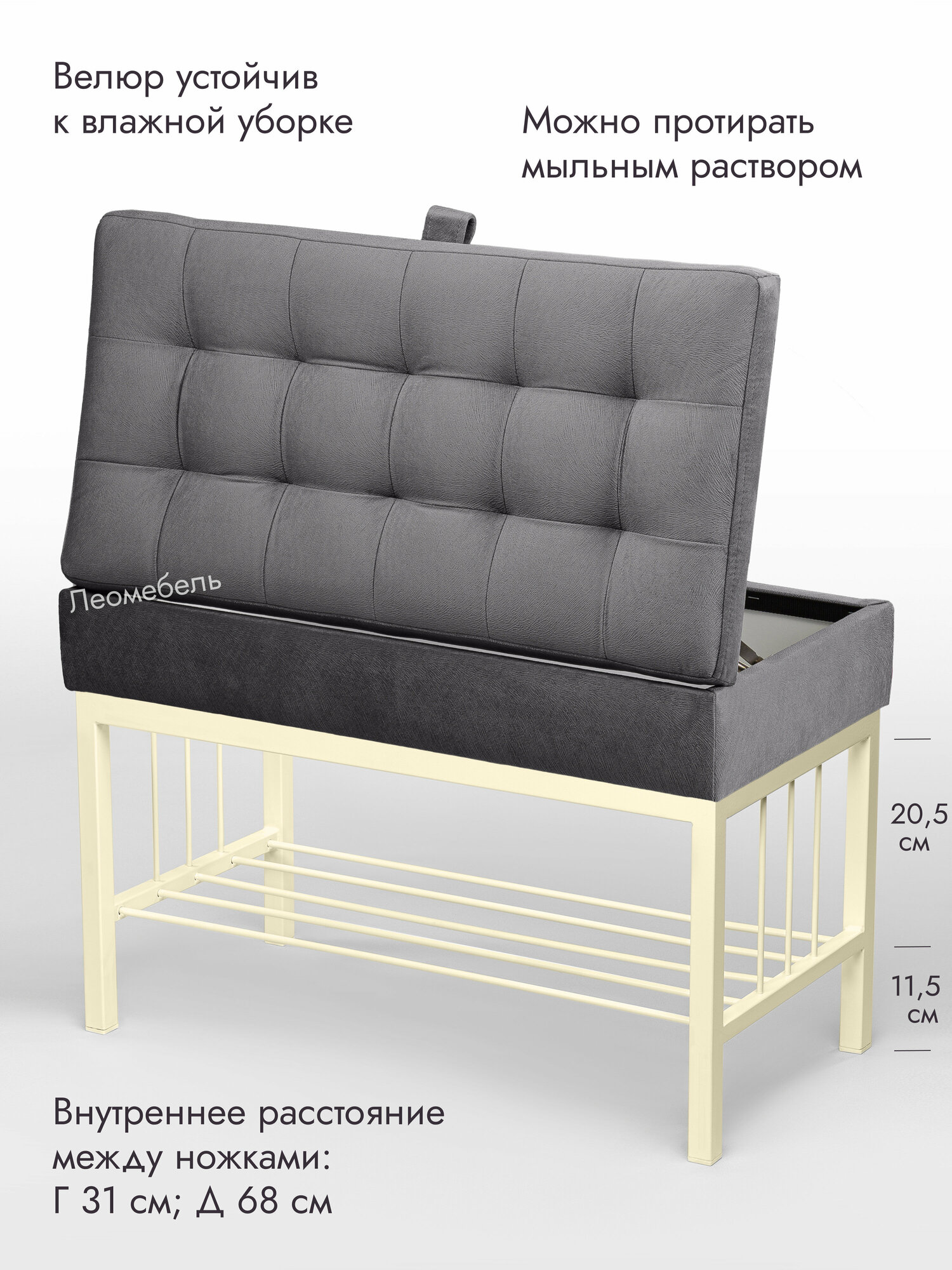 Банкетка в прихожую Леомебель обувница с сиденьем 76х53х39 Бежевый-серый информация: