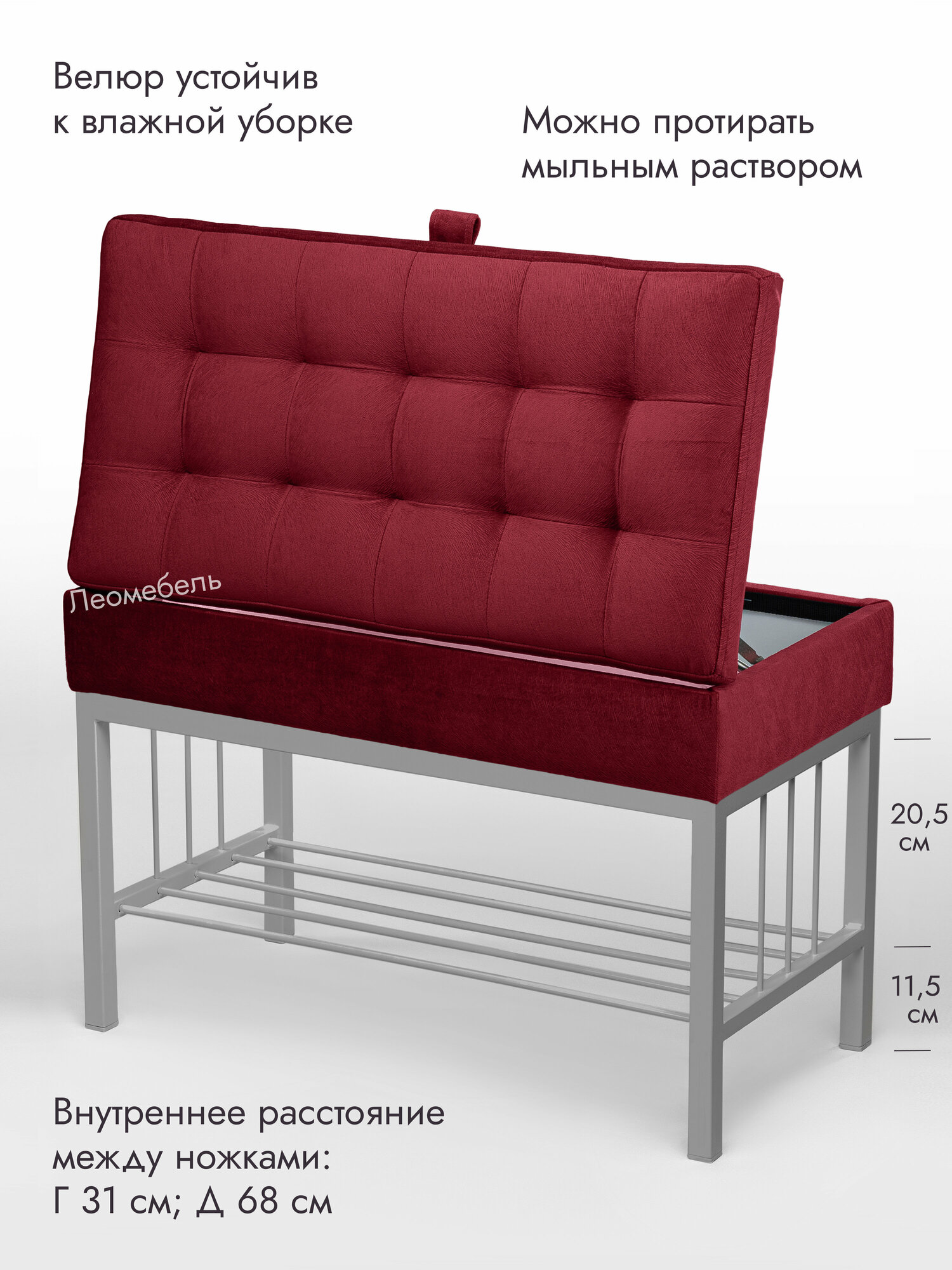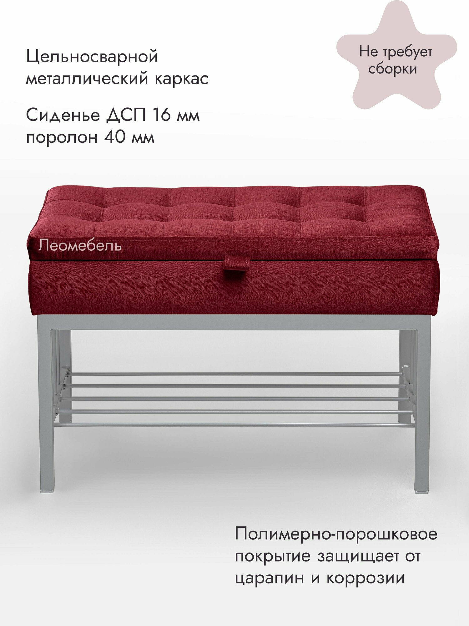 Банкетка в прихожую Леомебель обувница с сиденьем 76х53х39 Серый-красный информация: