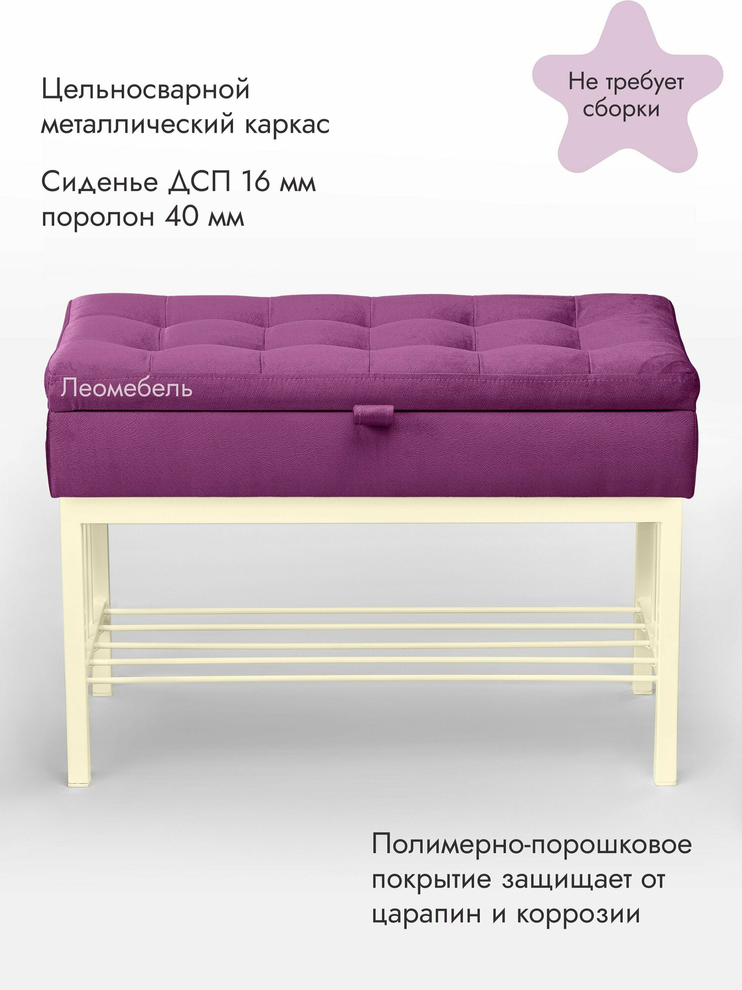 Банкетка в прихожую Леомебель обувница с сиденьем 76х53х39 Белый-фиолетовый 8 861 ₽