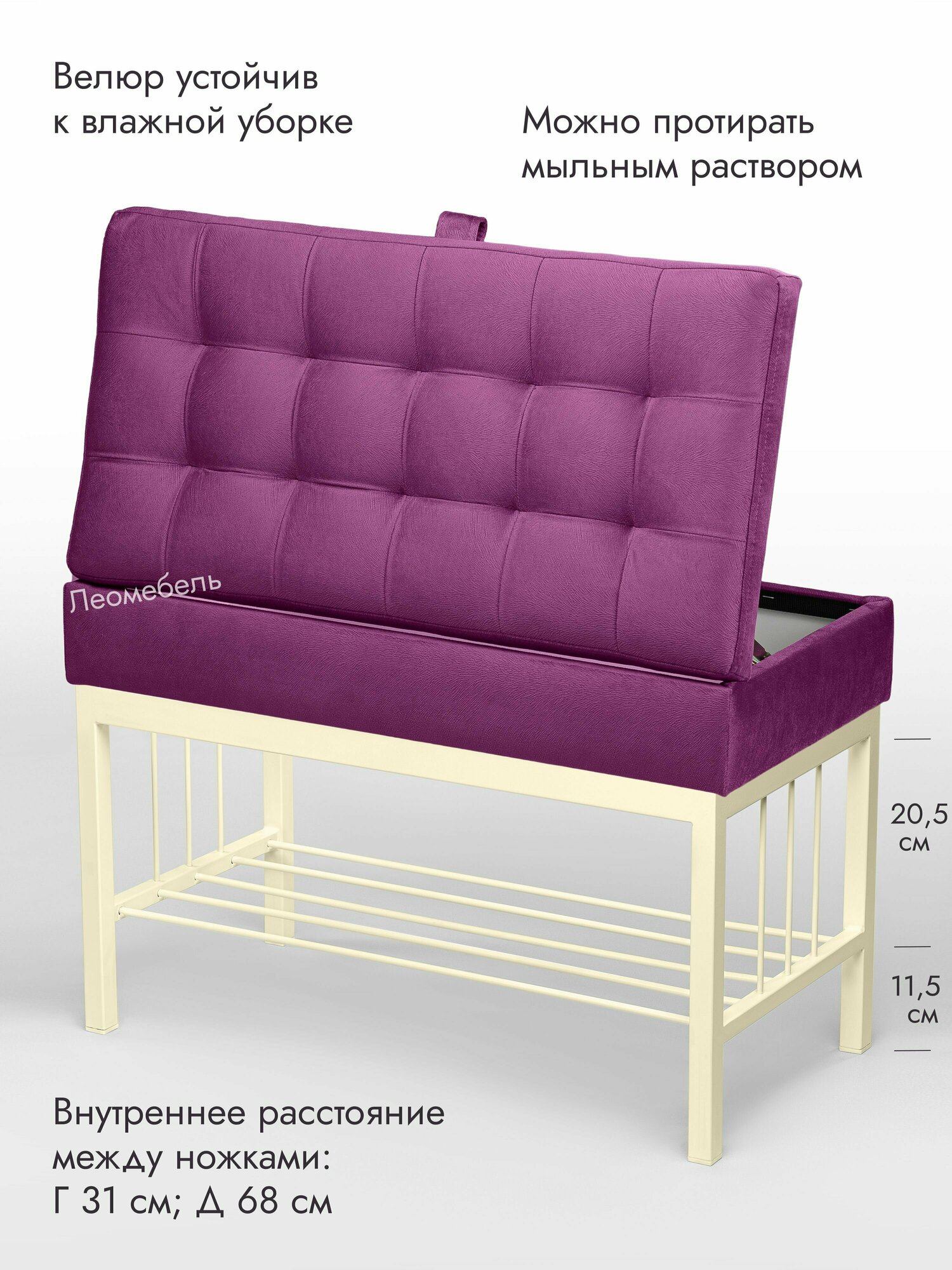 Банкетка в прихожую Леомебель обувница с сиденьем 76х53х39 Бежевый-фиолетовый 8 861 ₽