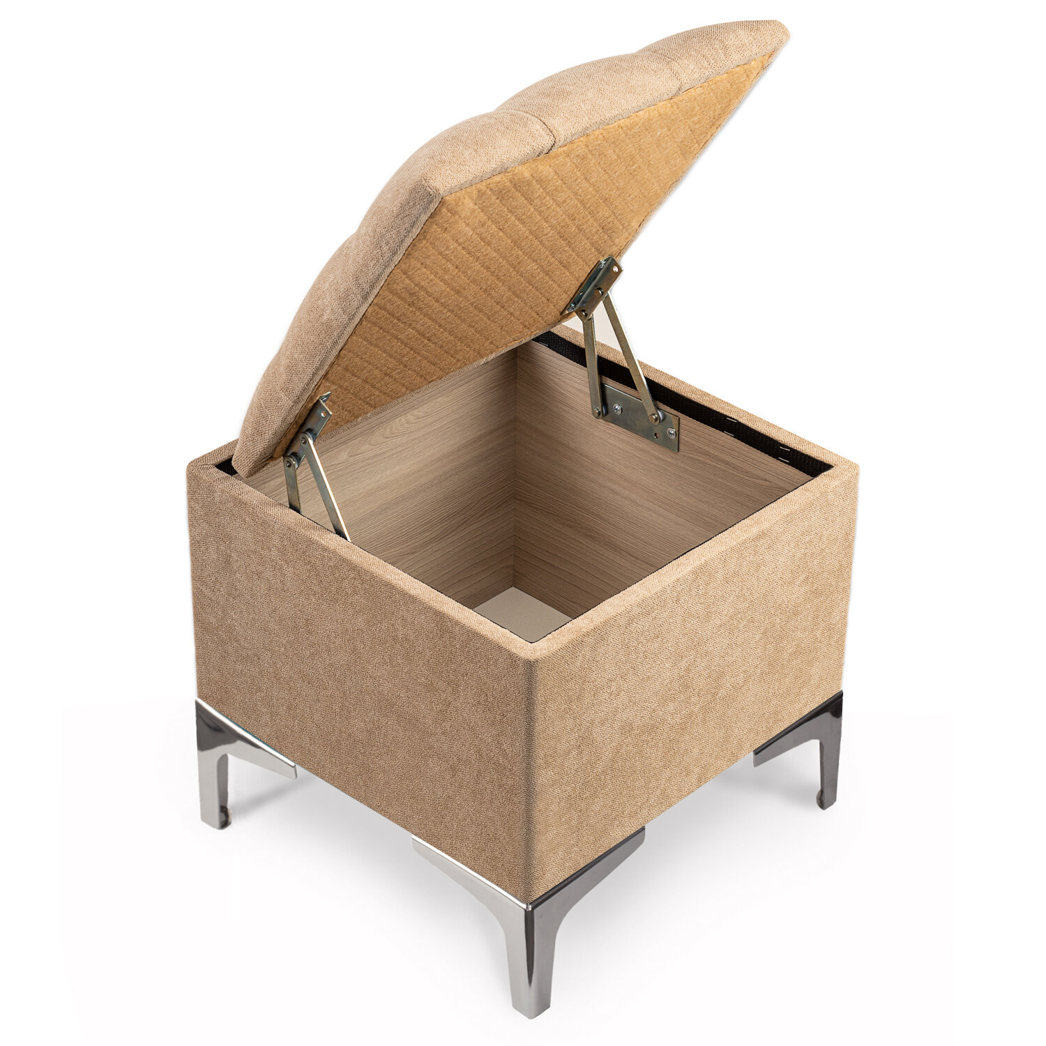 Пуфик с ящиком для прихожей, спальни или гостиной на металлических ножках из Фактурного велюра Бежевый информация: