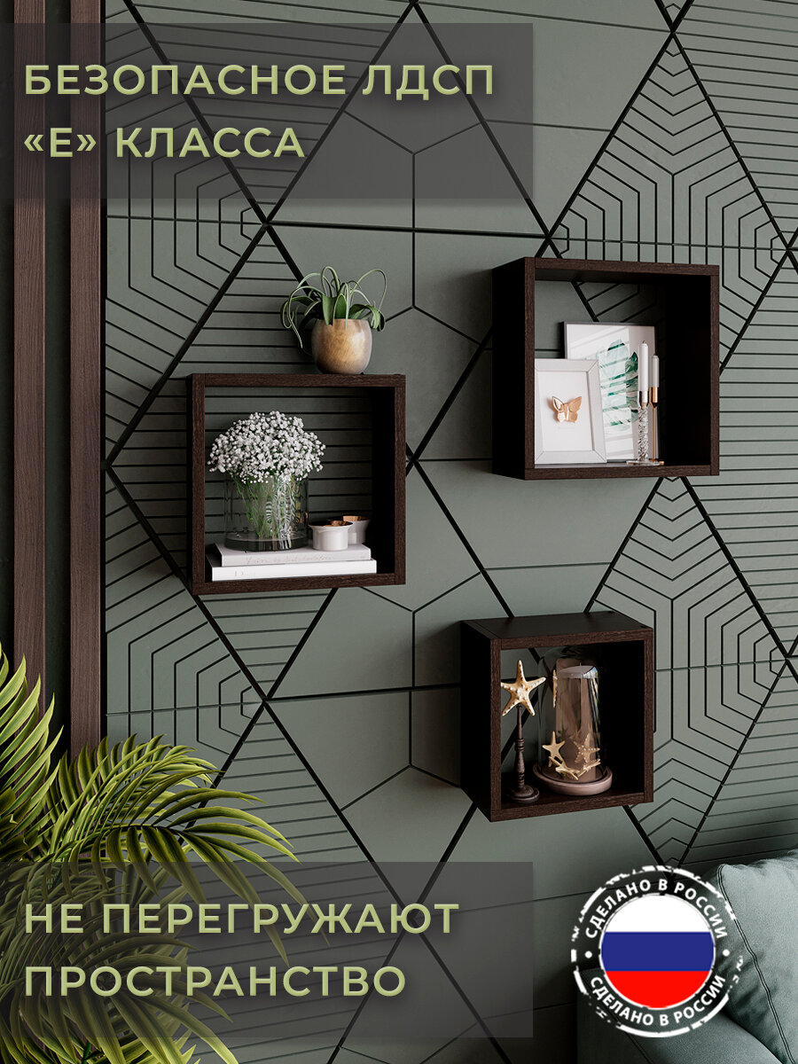 10 цен на Настенные полки венге 3 шт. в прихожую и мебель для дома 24х24 см. 27х27 см. 30х30 см.