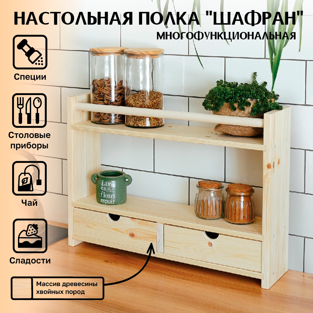 Настольная полка из натурального дерева с 2 ящиками, 54*38,5*13 см 2 800 ₽
